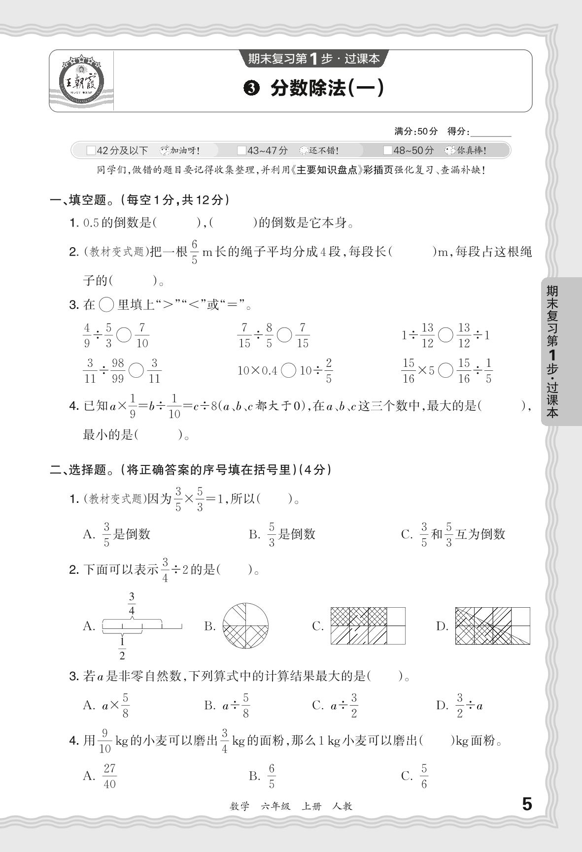 2023秋上册六年级数学人教版 期末过课本QMB版·分数除法(一)【3】