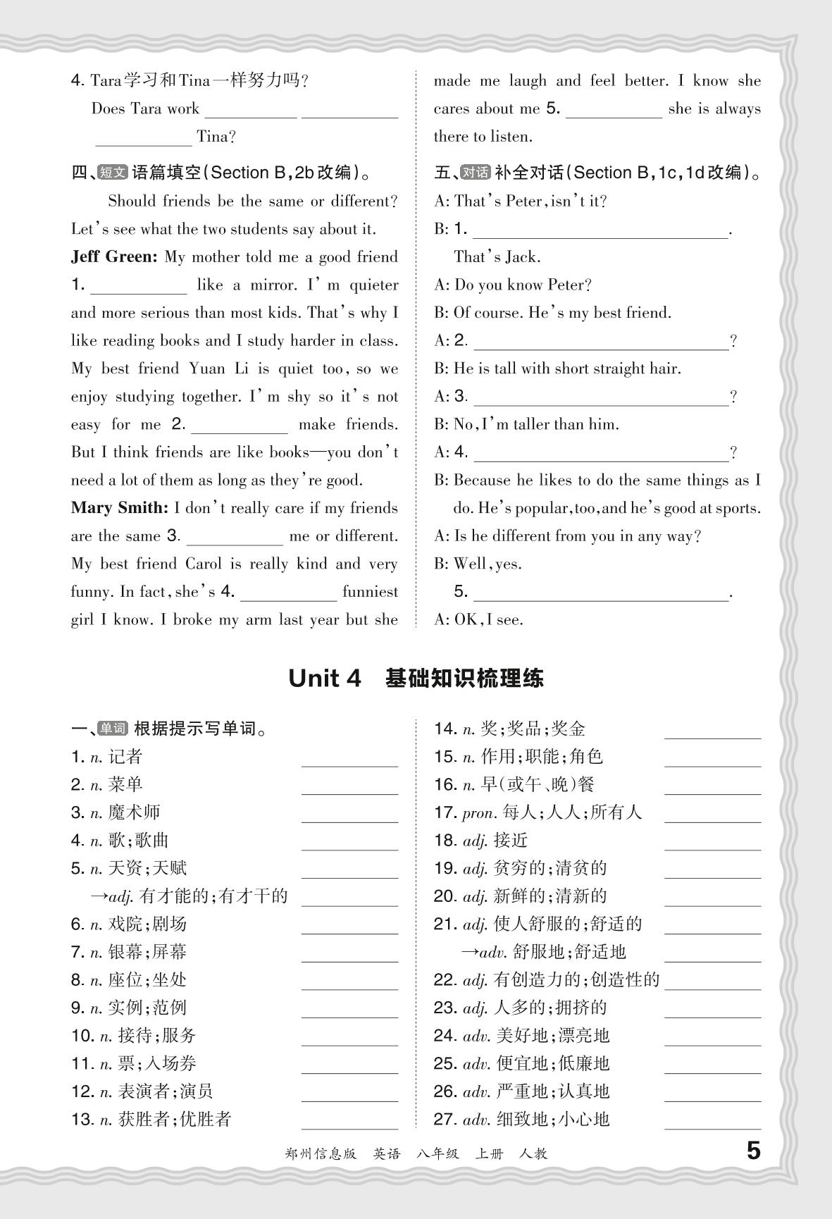 2023秋上册八年级英语人教版 期末过课本·Unit 4 基础知识梳理练_R231128100919993