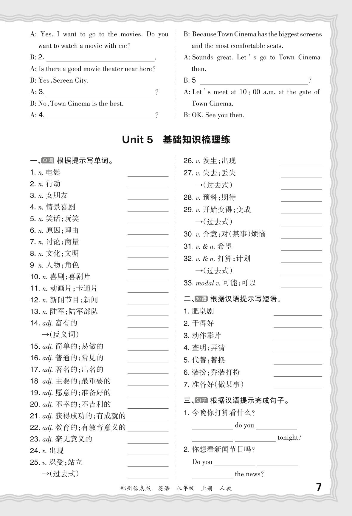2023秋上册八年级英语人教版 期末过课本·Unit 5 基础知识梳理练_R231128100919992