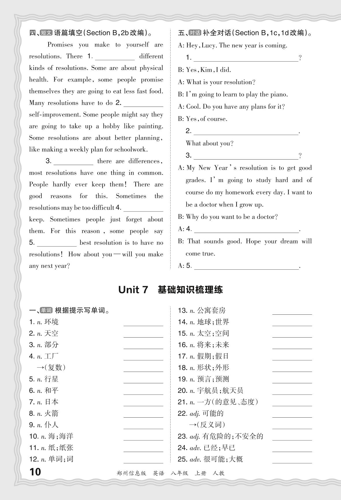 2023秋上册八年级英语人教版 期末过课本·Unit 7 基础知识梳理练_R231128100920292