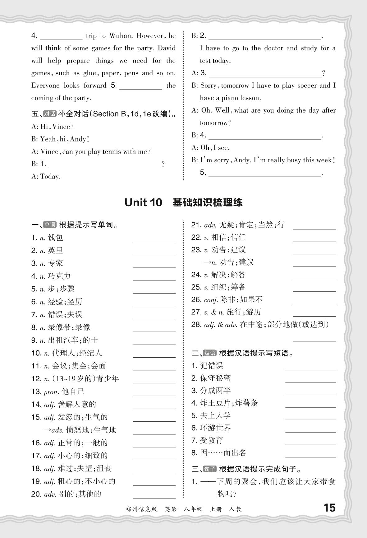 2023秋上册八年级英语人教版 期末过课本·Unit 10 基础知识梳理练_R231128100921925
