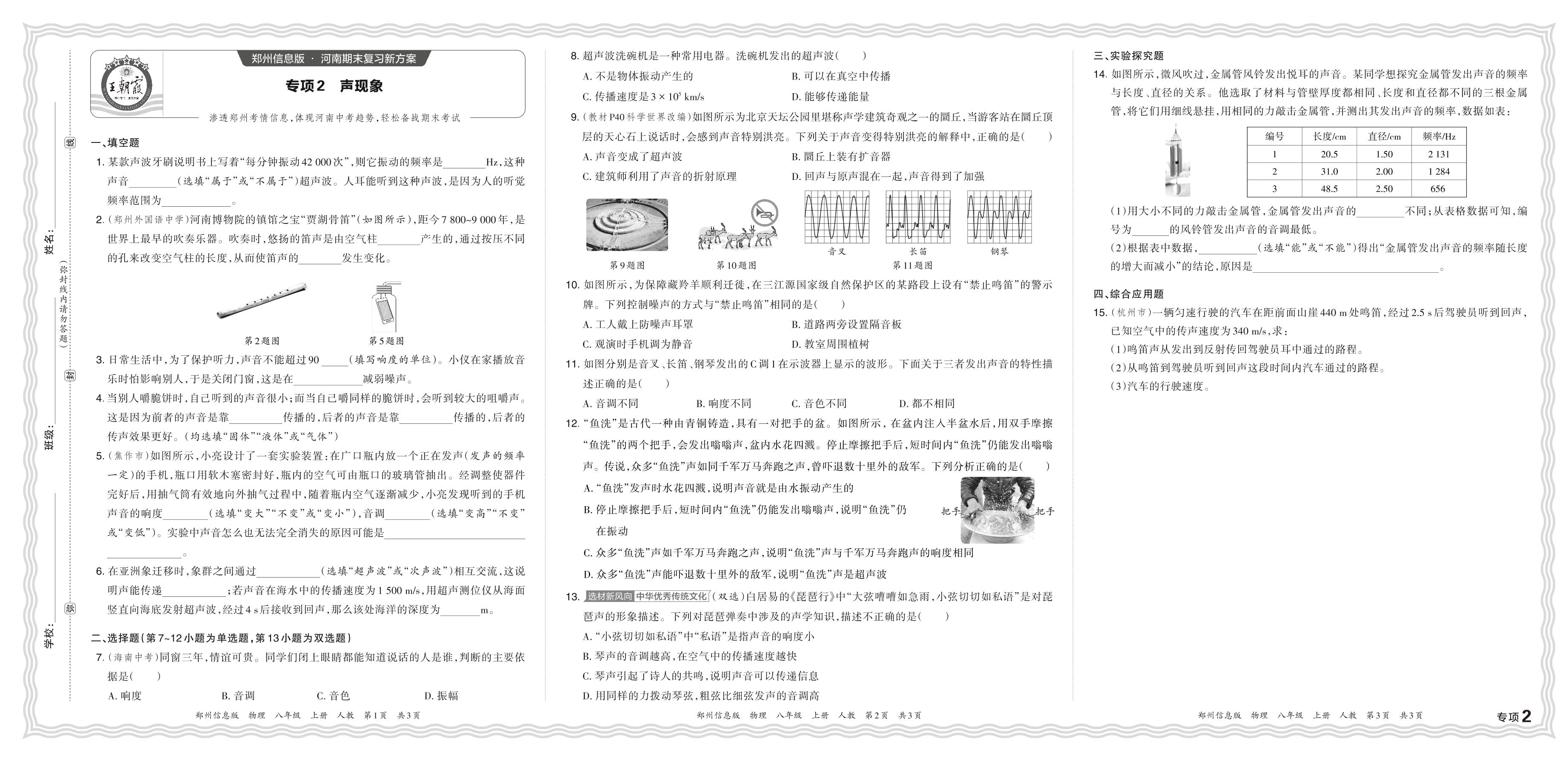 2023秋上册八年级物理人教版 期末专项卷·声现象【2】