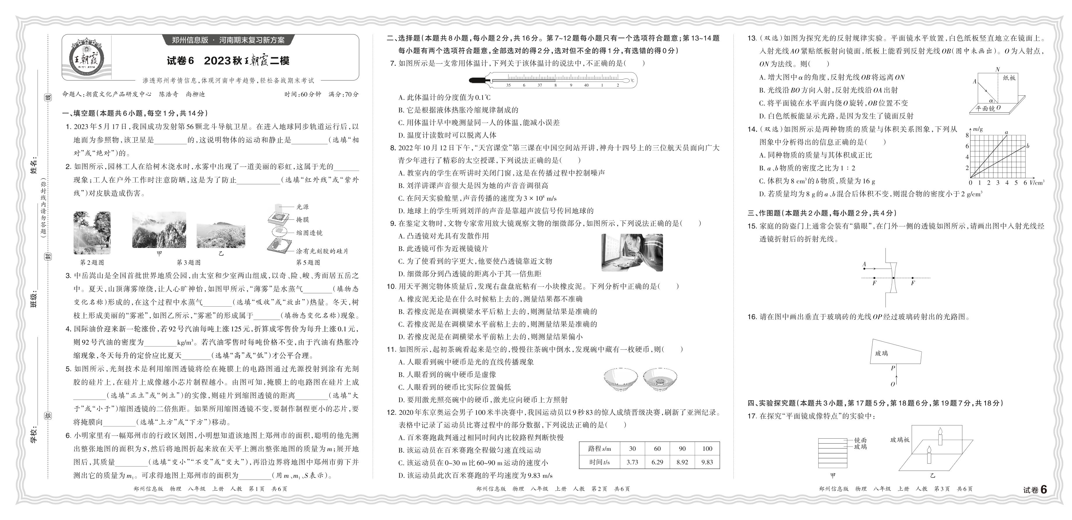 2023秋上册八年级物理人教版 王朝霞二模