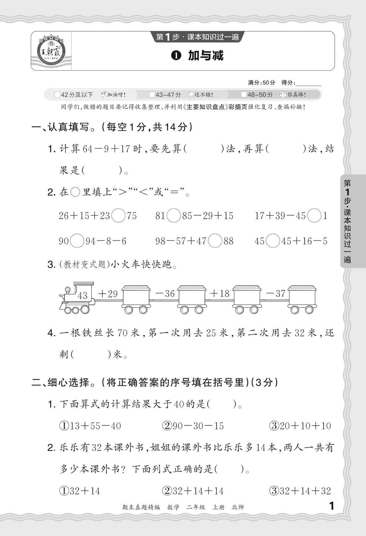 2023秋上册二年级数学北师版 期末过课本·加与减【1】