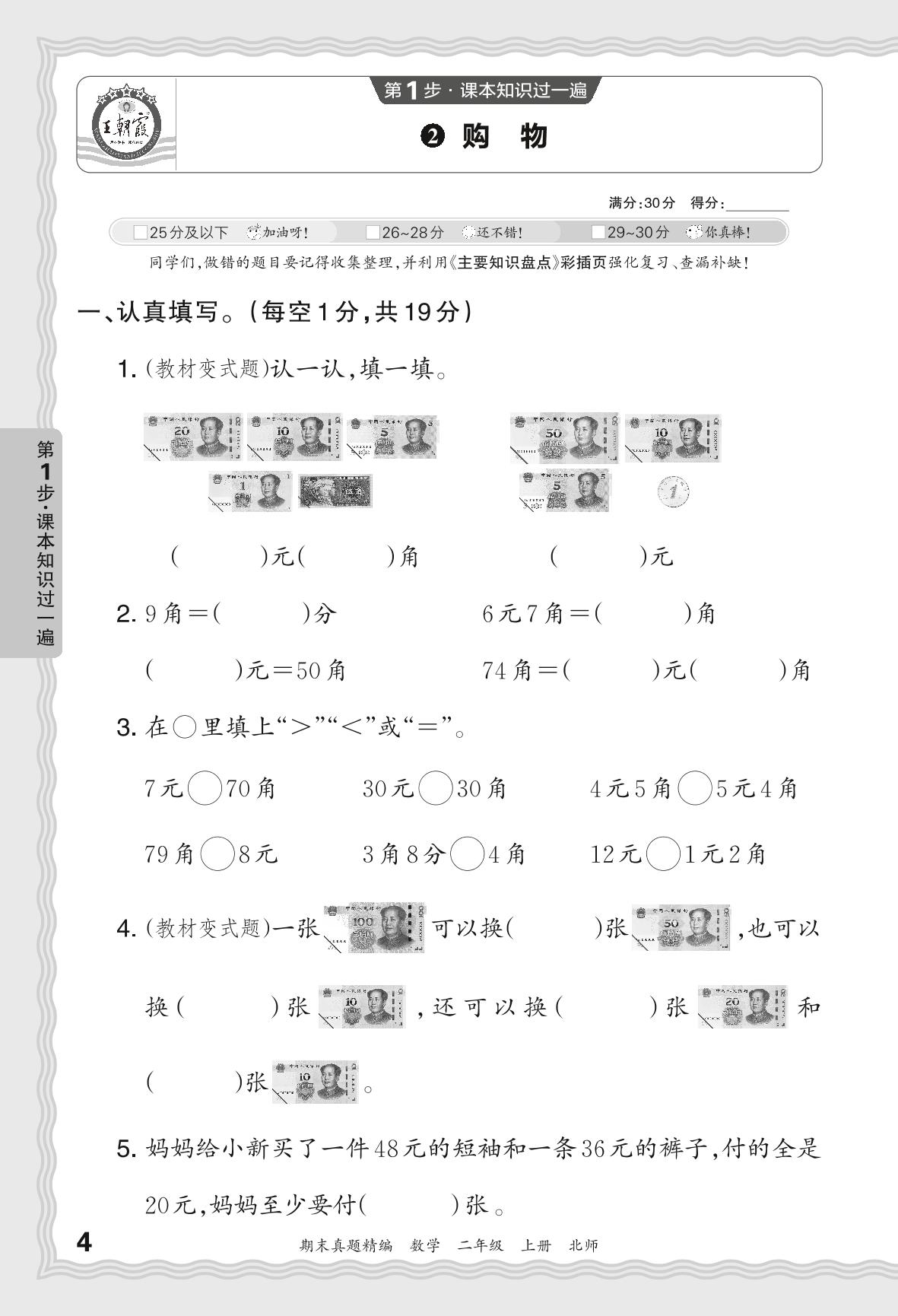 2023秋上册二年级数学北师版 期末过课本·购物【2】