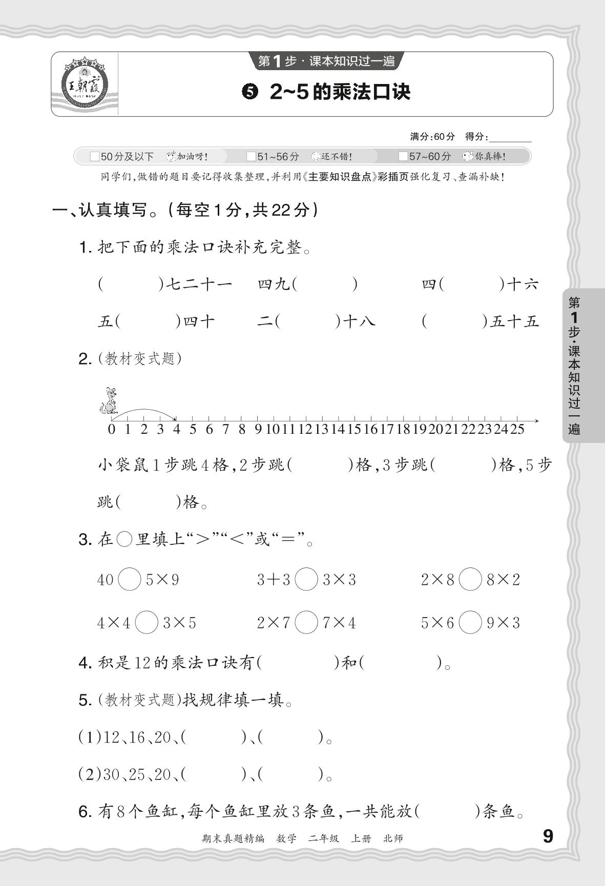 2023秋上册二年级数学北师版 期末过课本·2-5的乘法口诀【5】