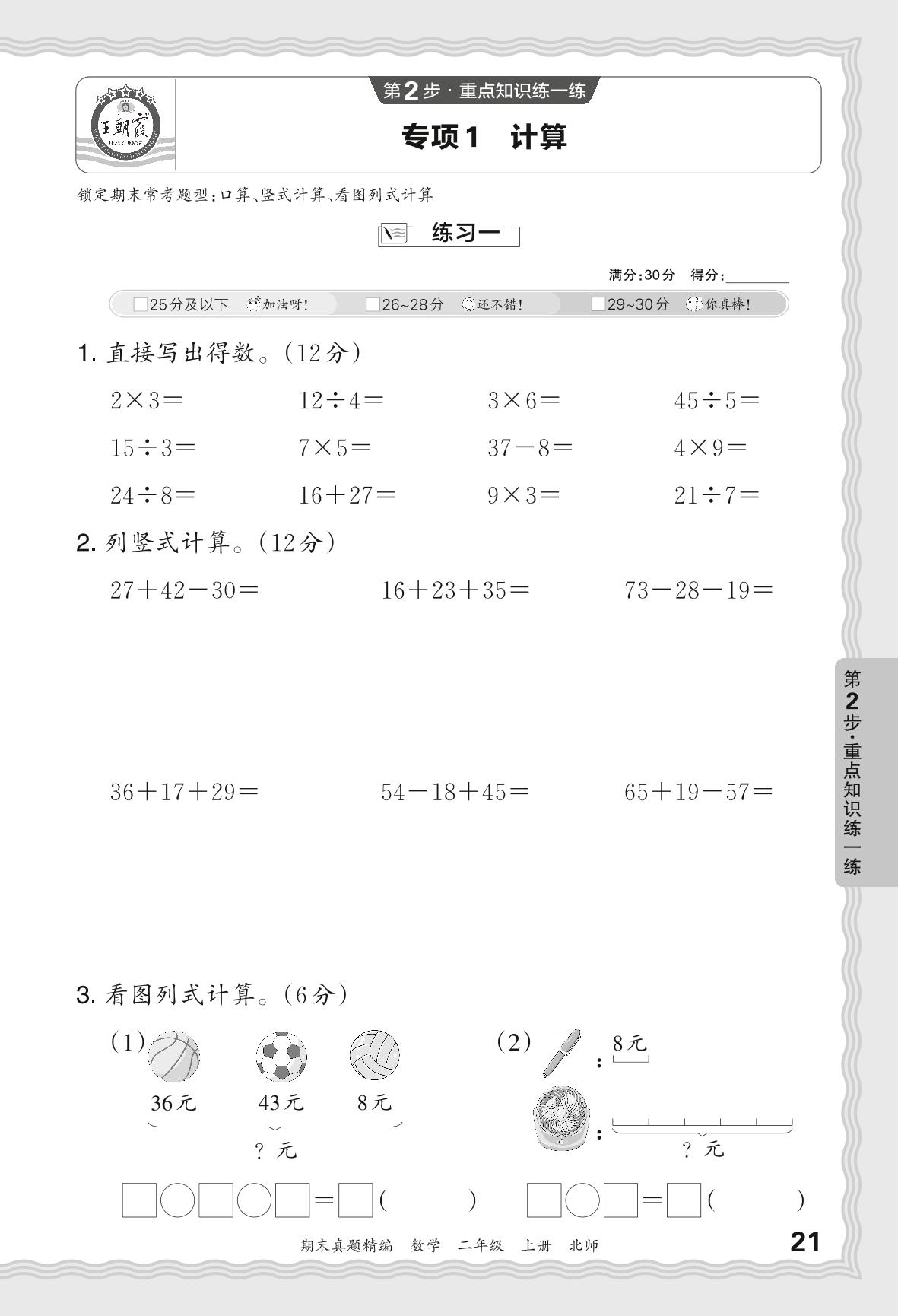 2023秋上册二年级数学北师版 期末专项卷·计算【1】