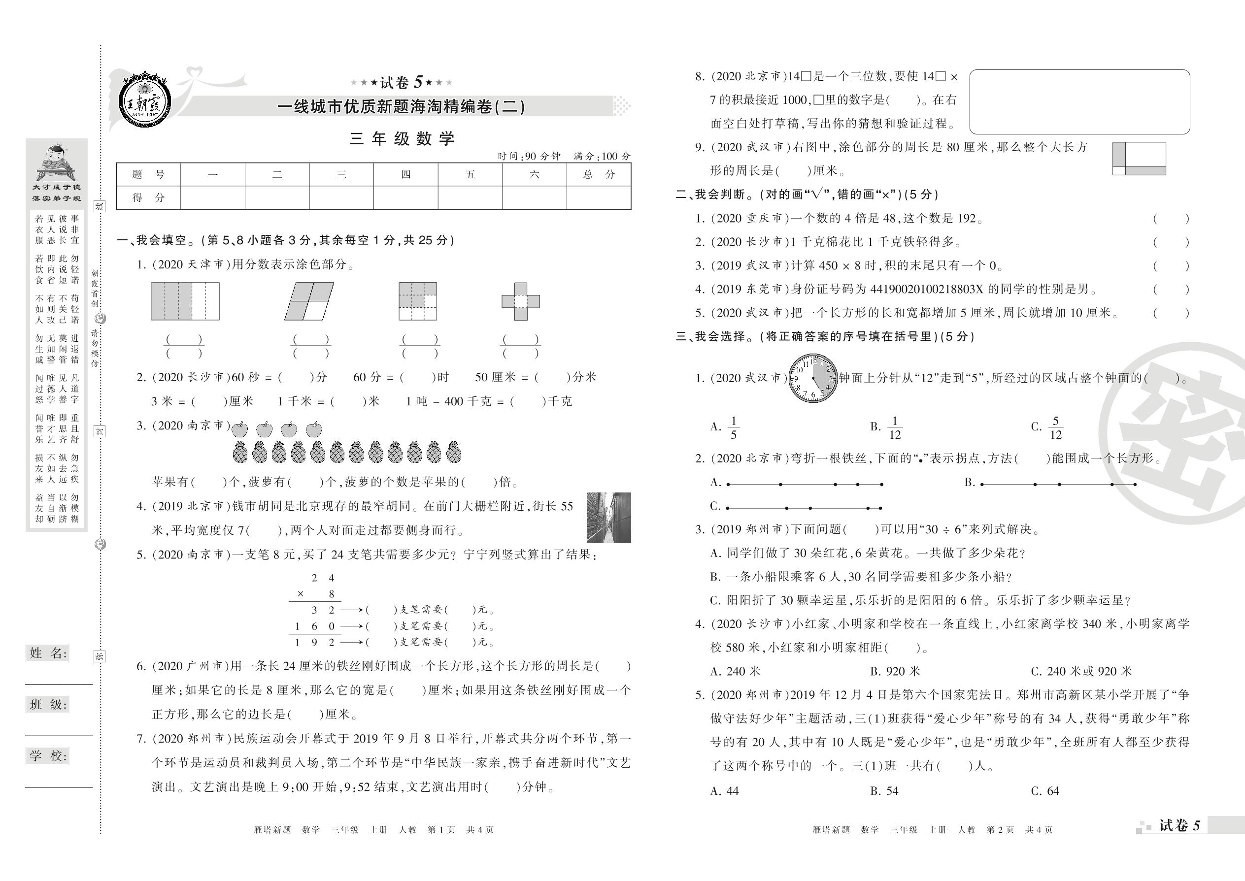 王朝霞海淘期末精编卷三年级上册数学(人教版)【5】