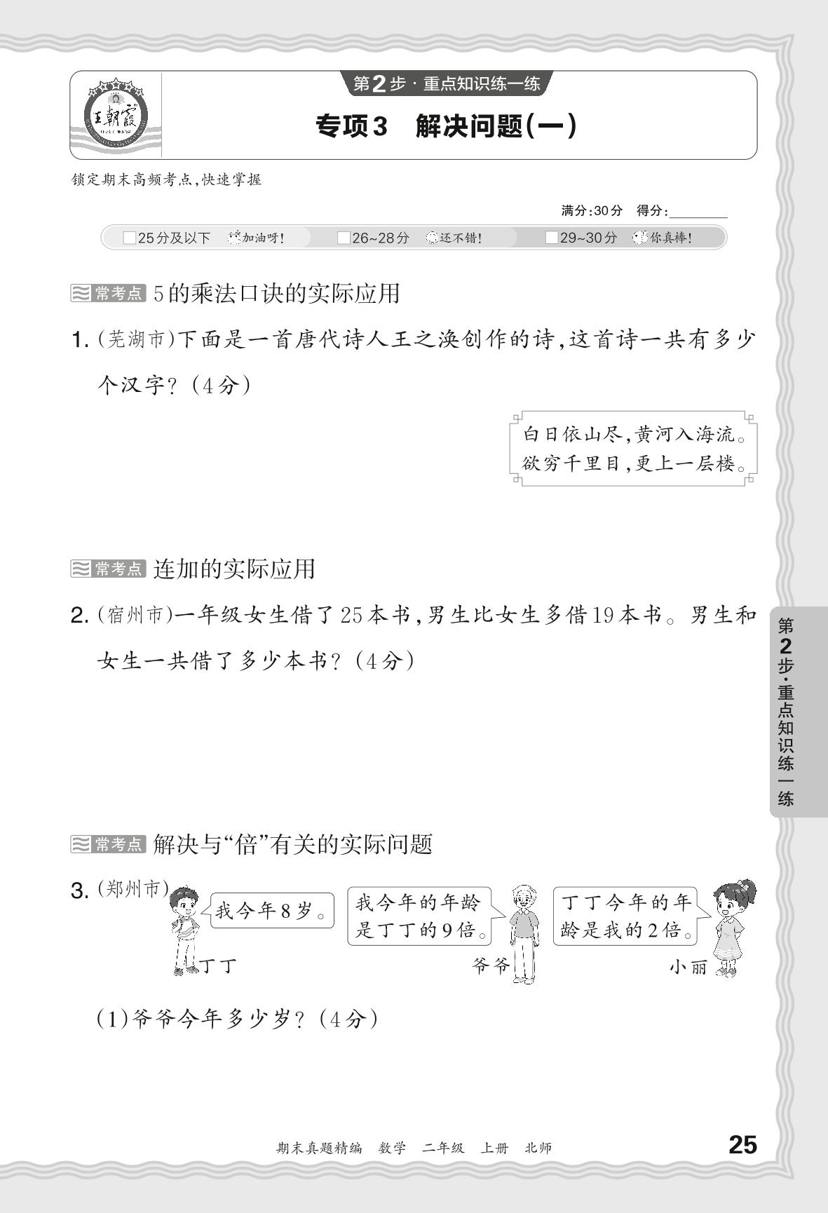 2023秋上册二年级数学北师版 期末专项卷·解决问题(一)【3】