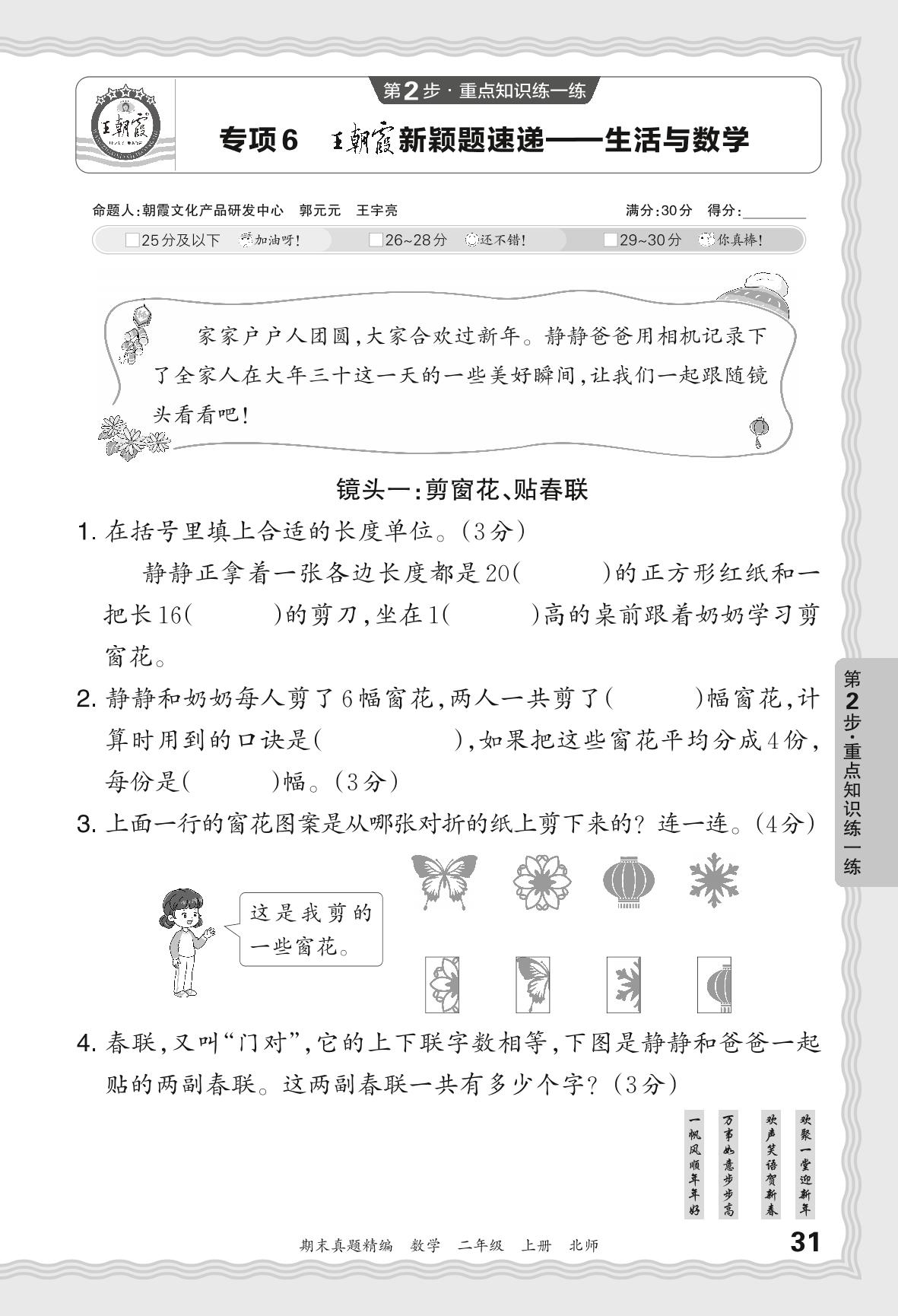 2023秋上册二年级数学北师版 期末专项卷·王朝霞新颖题速递——生活与数学【6】