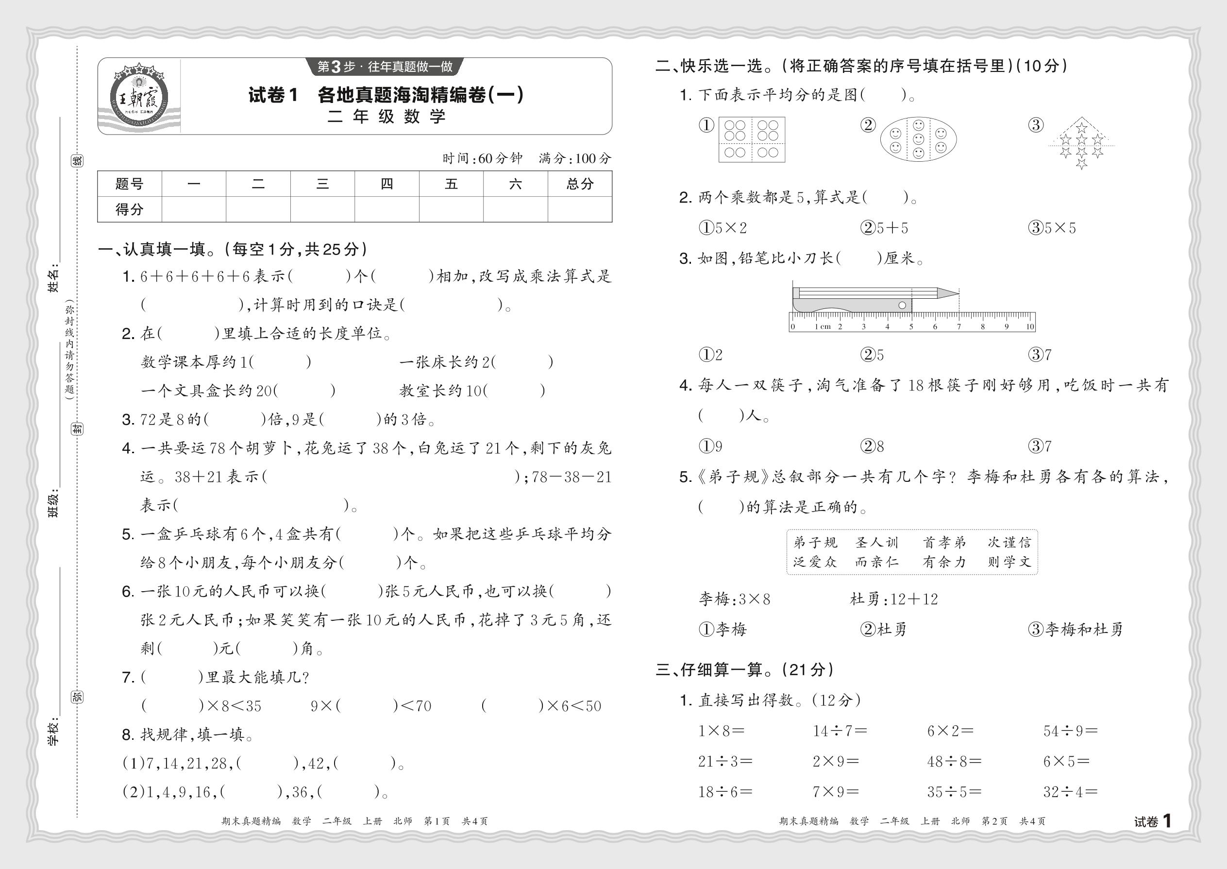 2023秋上册二年级数学北师版 各地真题海淘精编卷(一)【1】