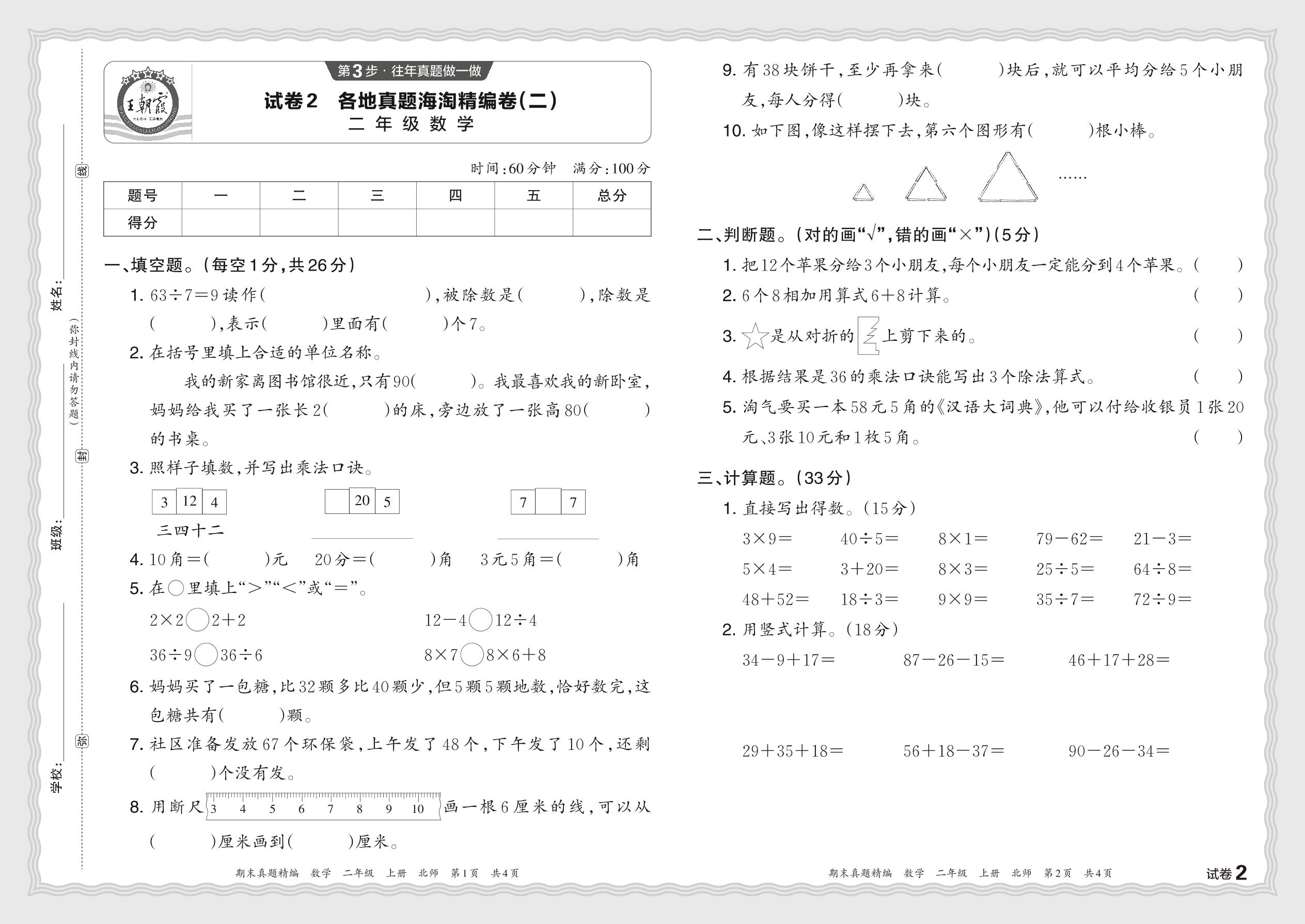 2023秋上册二年级数学北师版 各地真题海淘精编卷(二)【2】