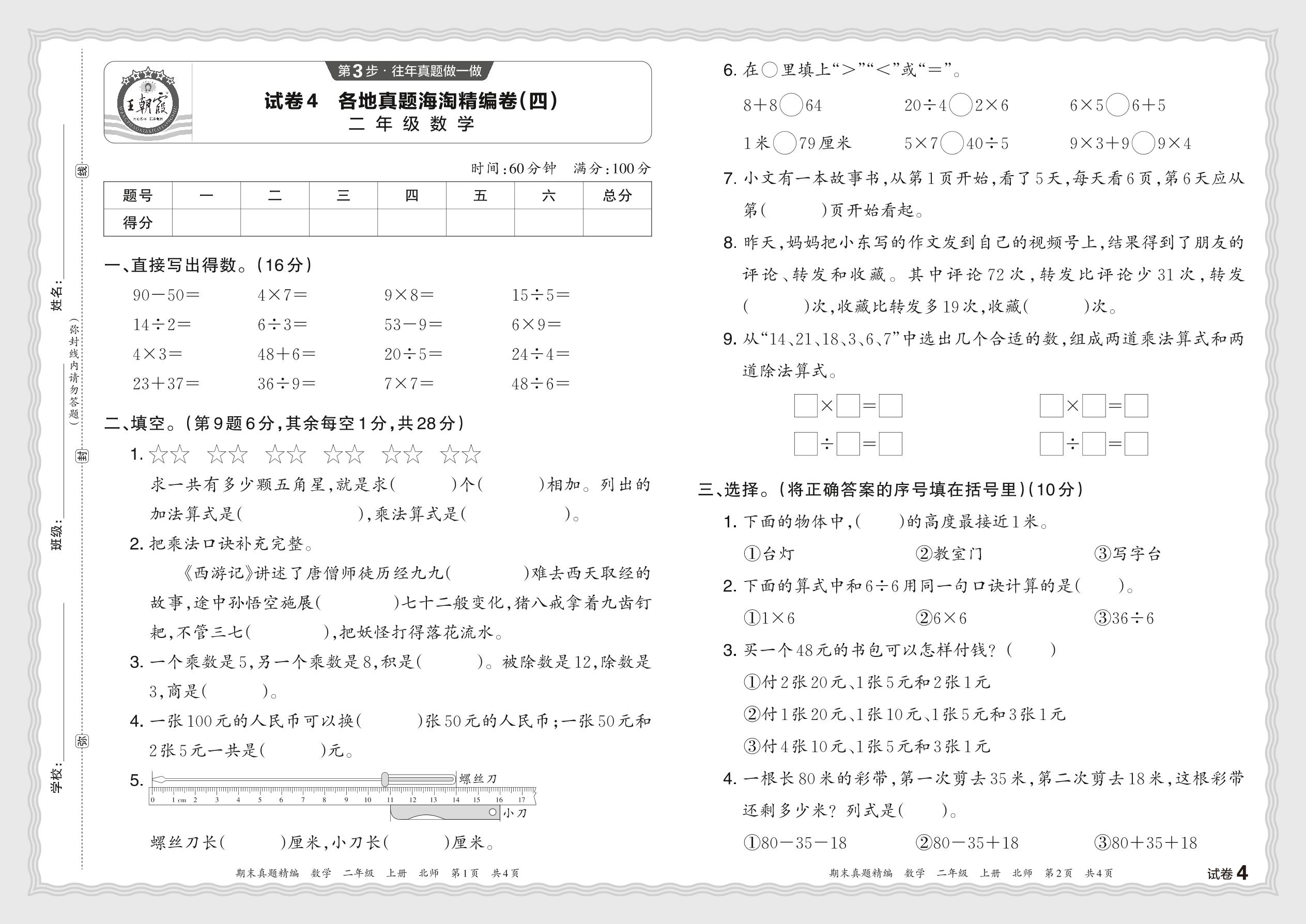 2023秋上册二年级数学北师版 各地真题海淘精编卷(四)【4】