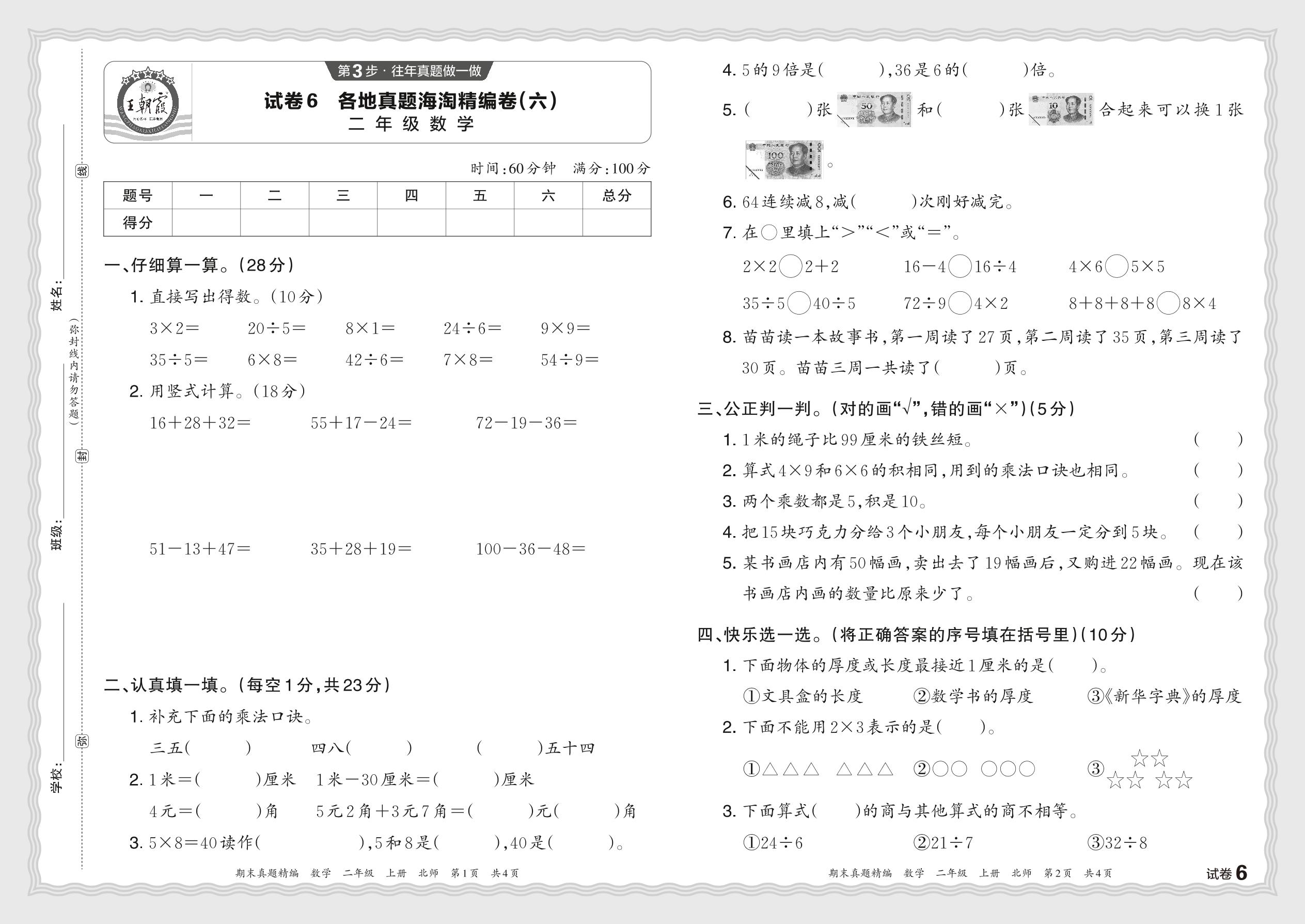 2023秋上册二年级数学北师版 各地真题海淘精编卷(六)【6】