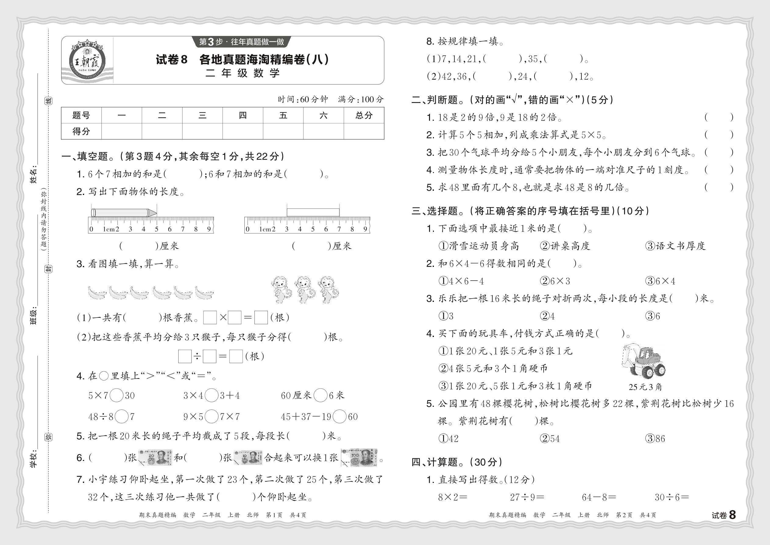 2023秋上册二年级数学北师版 各地真题海淘精编卷(八)【8】