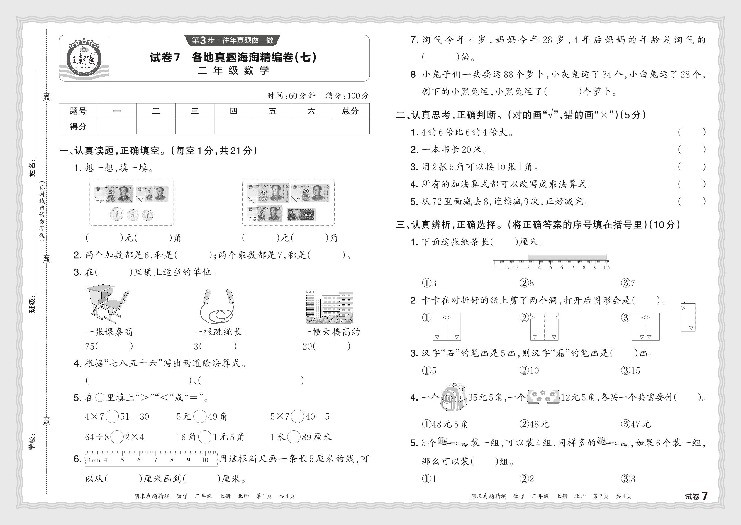 2023秋上册二年级数学北师版 各地真题海淘精编卷(七)【7】