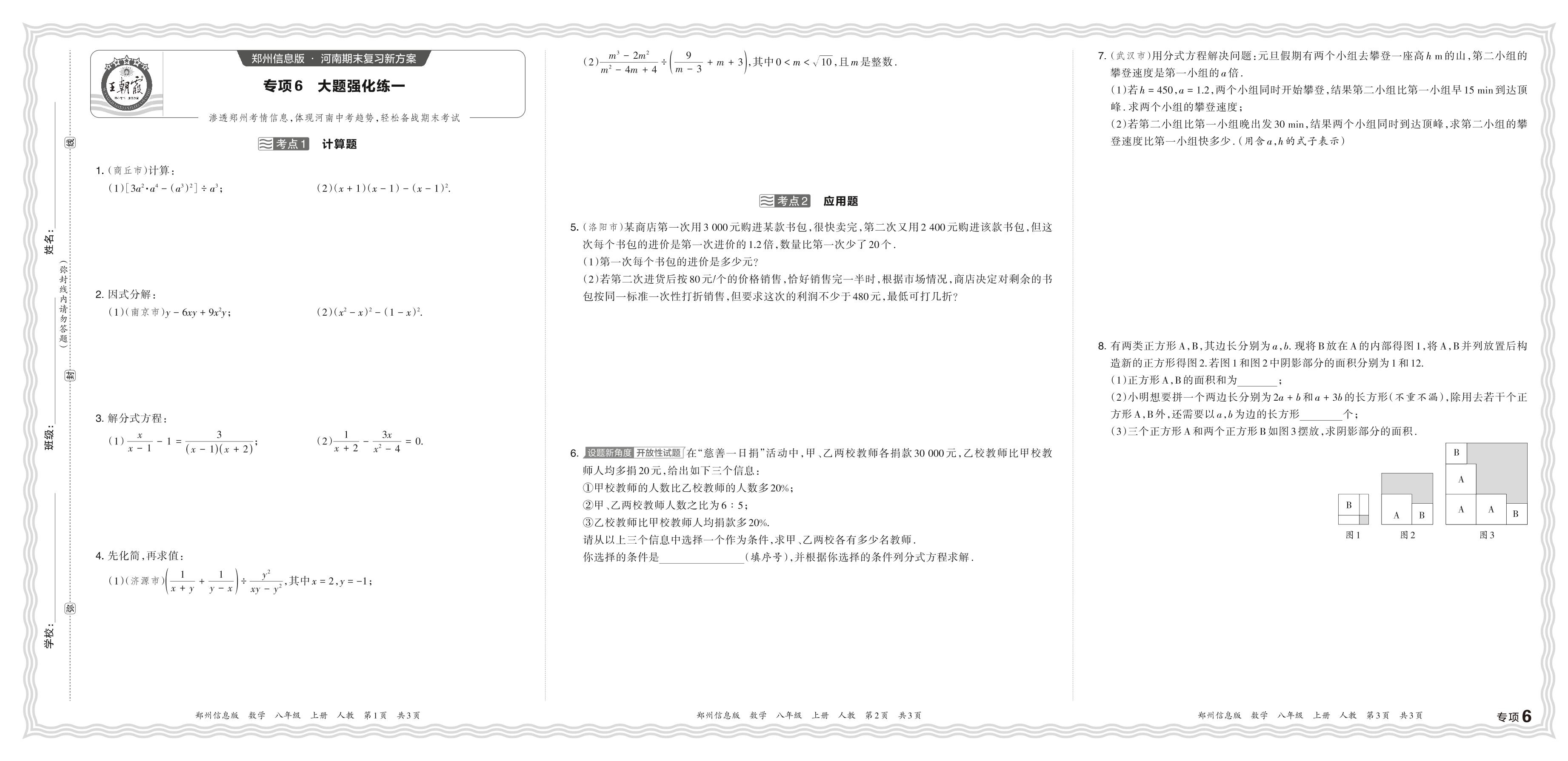 2023秋上册八年级数学人教版 期末专项卷·大题强化练一【6】