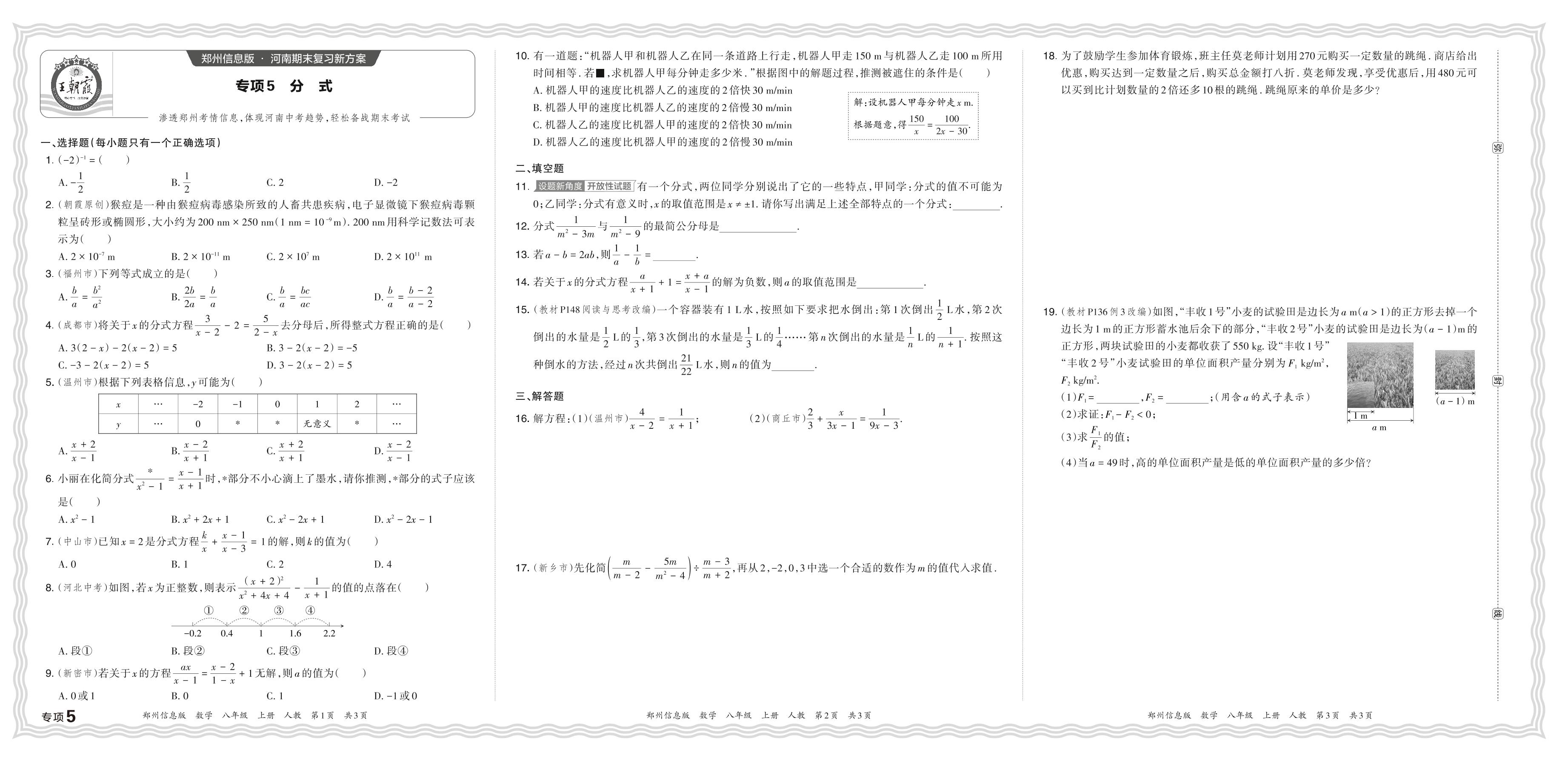 2023秋上册八年级数学人教版 期末专项卷·分式【5】