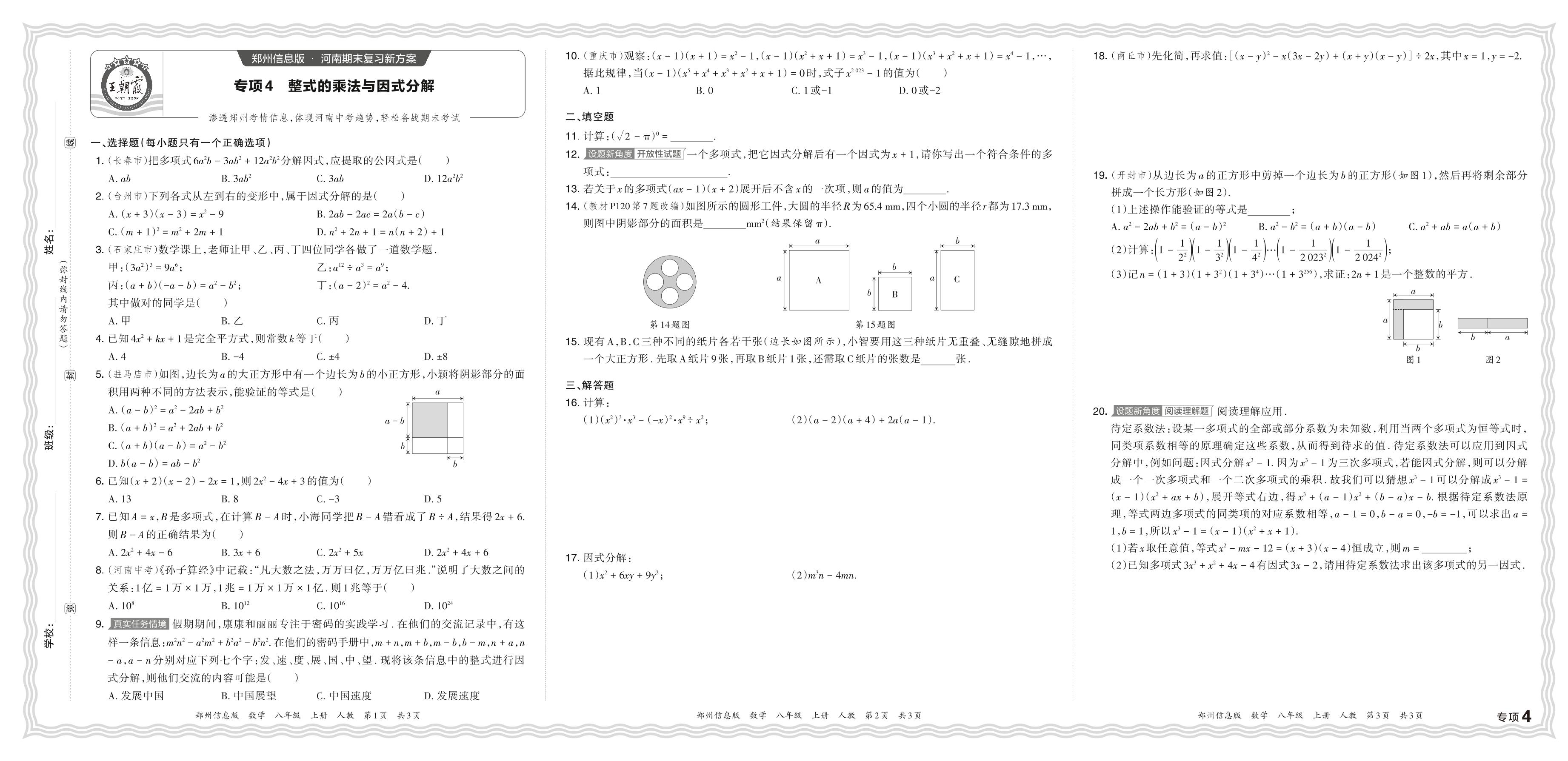 2023秋上册八年级数学人教版 期末专项卷·整式的乘法与因式分解【4】