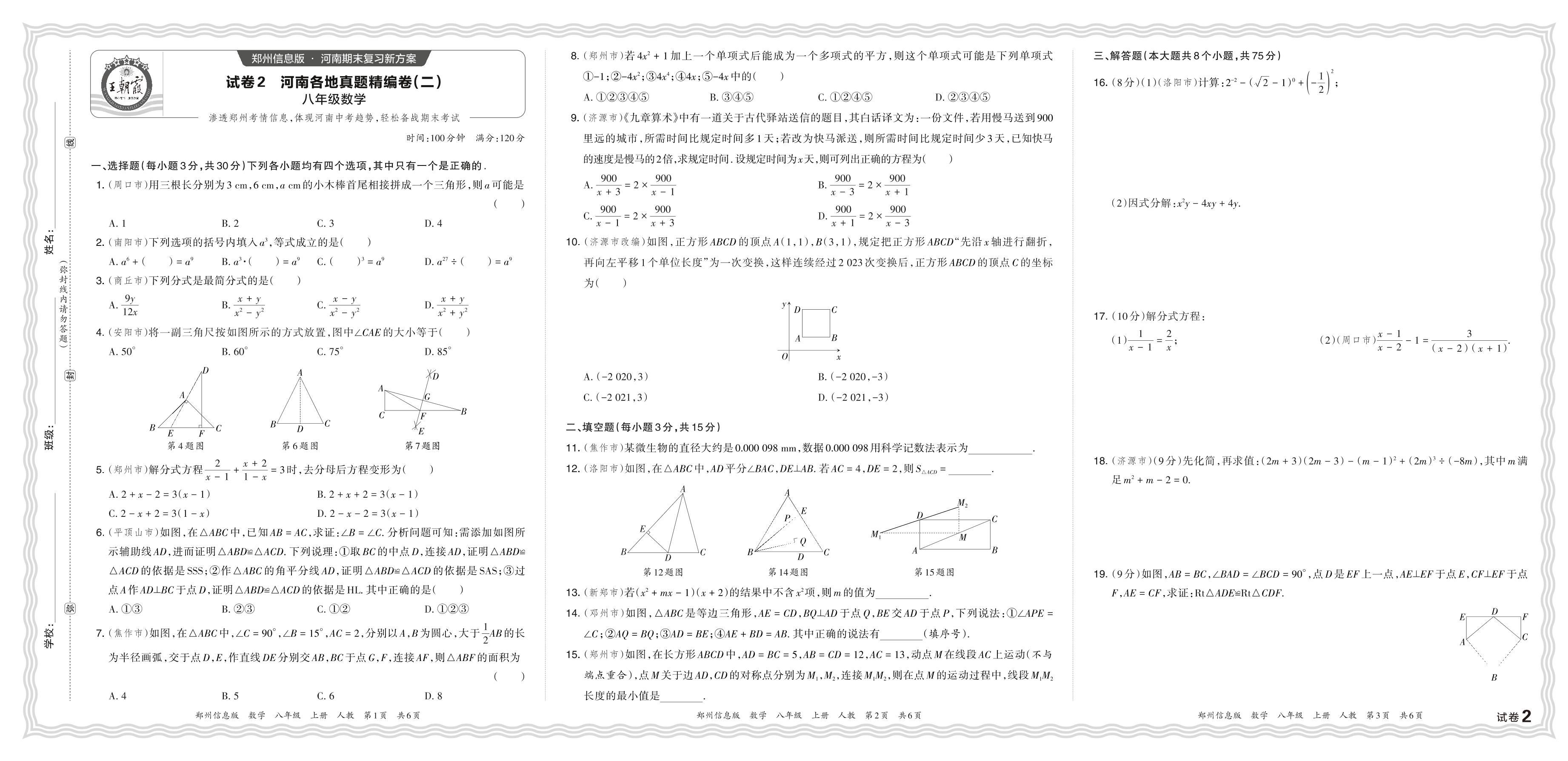 2023年秋河南各地真题精编卷(二)八年级上册期末数学(人教版)【2】