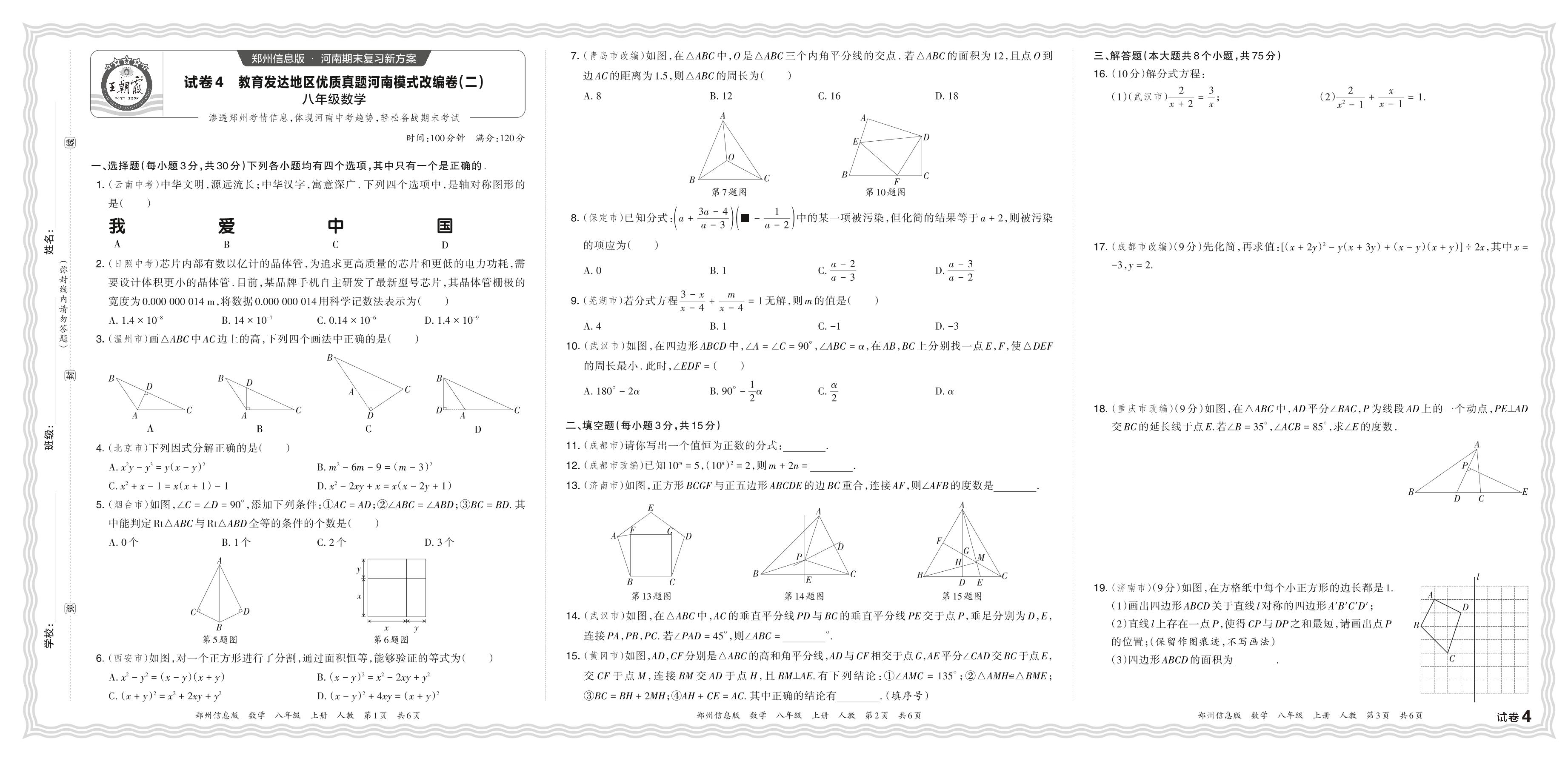 2023年秋教育发达地区优质真题河南模式改编卷(二)八年级上册期末数学(人教版)【4】
