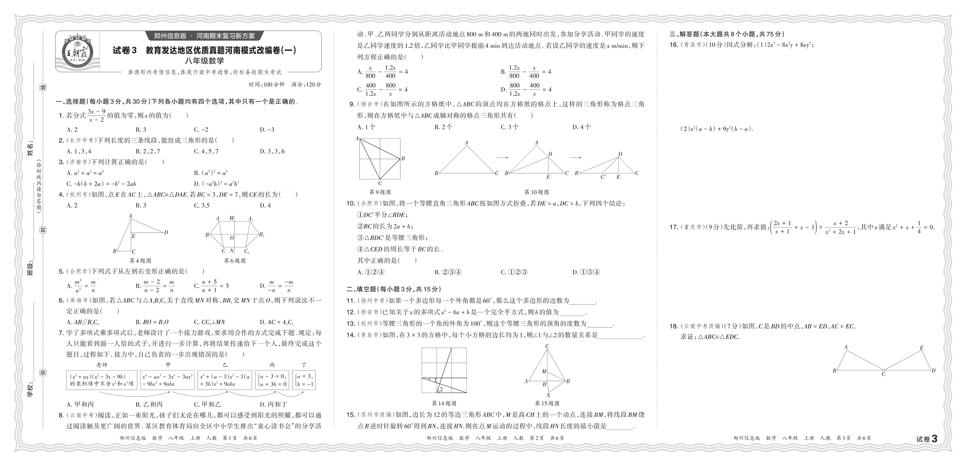 2023年秋教育发达地区优质真题河南模式改编卷(一)八年级上册期末数学(人教版)【3】