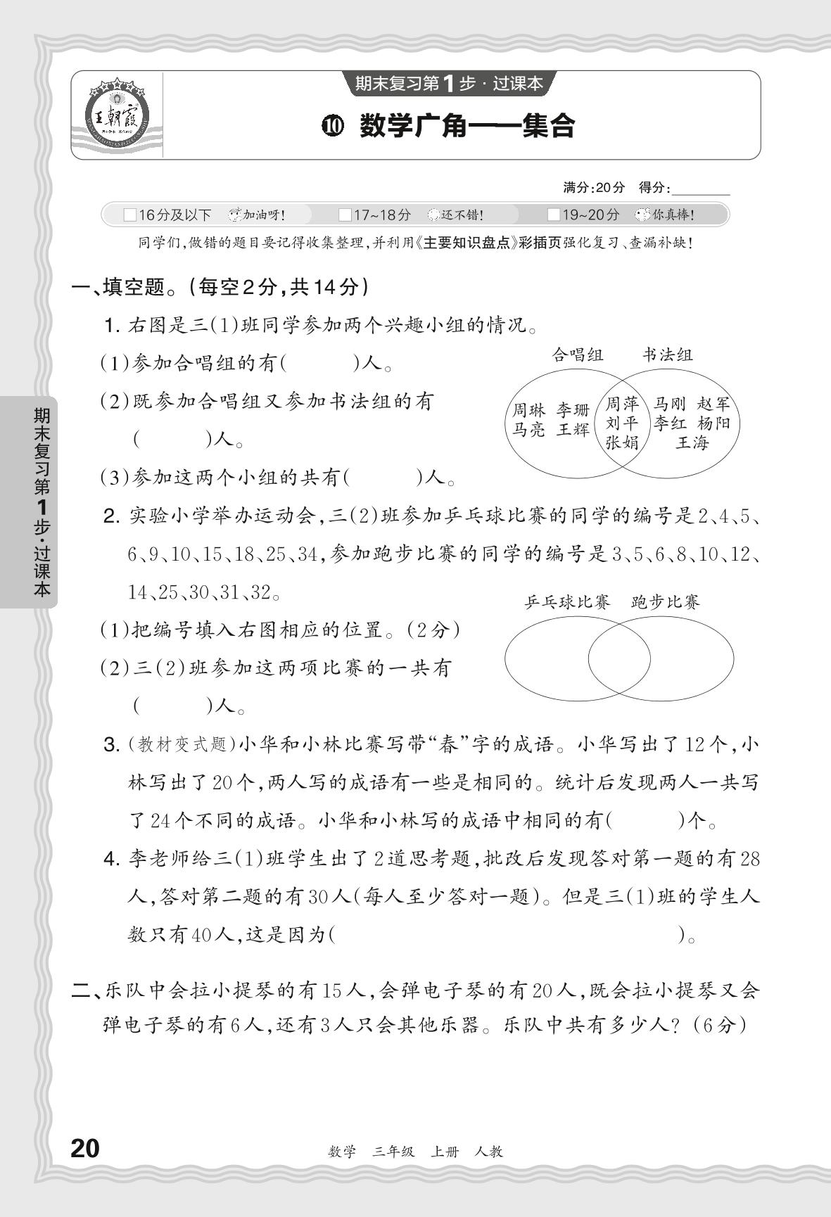 2023秋上册三年级数学人教版 期末过课本QMB版·数学广角——集合【10】