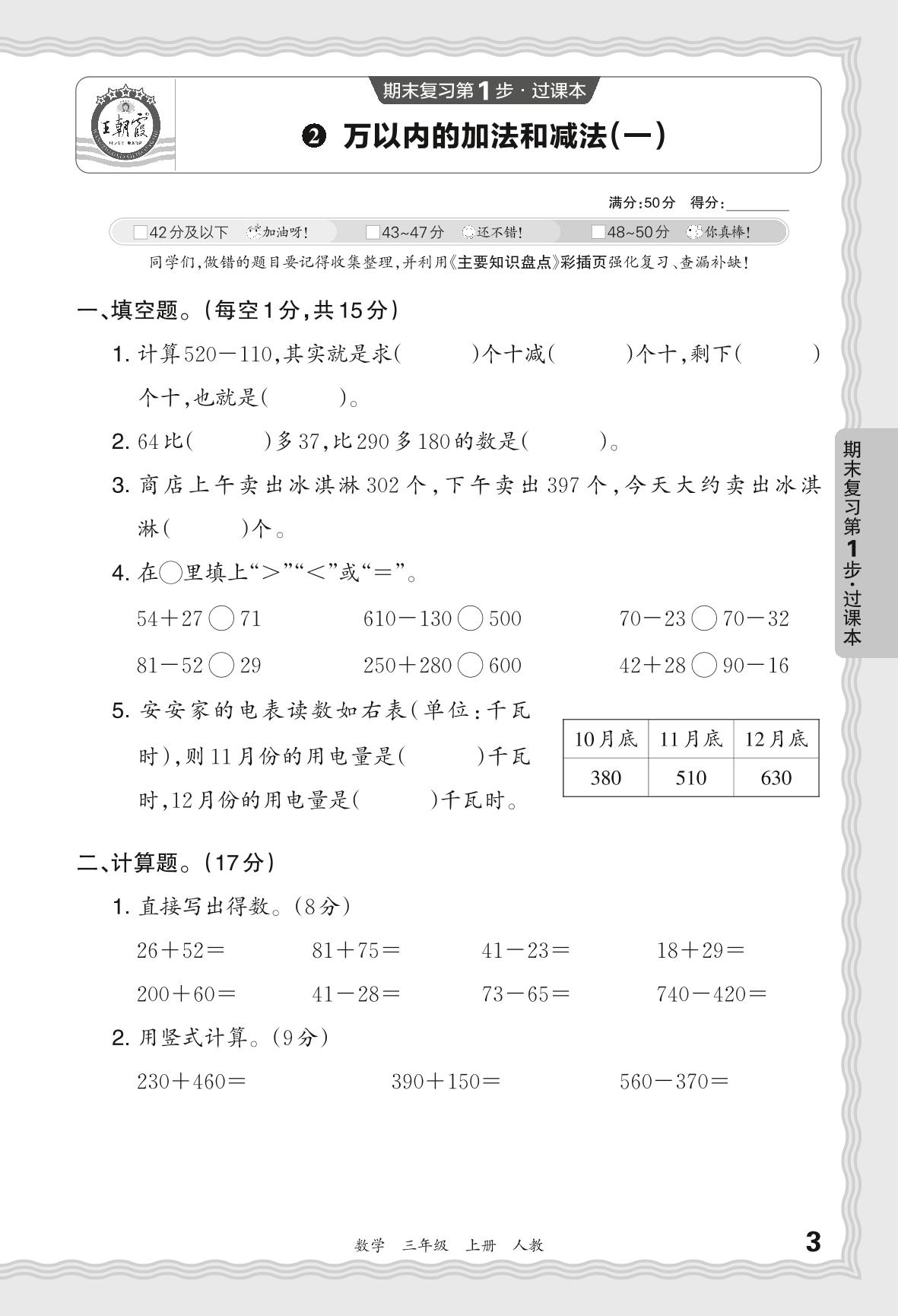2023秋上册三年级数学人教版 期末过课本QMB版·万以内的加法和减法(一)【2】