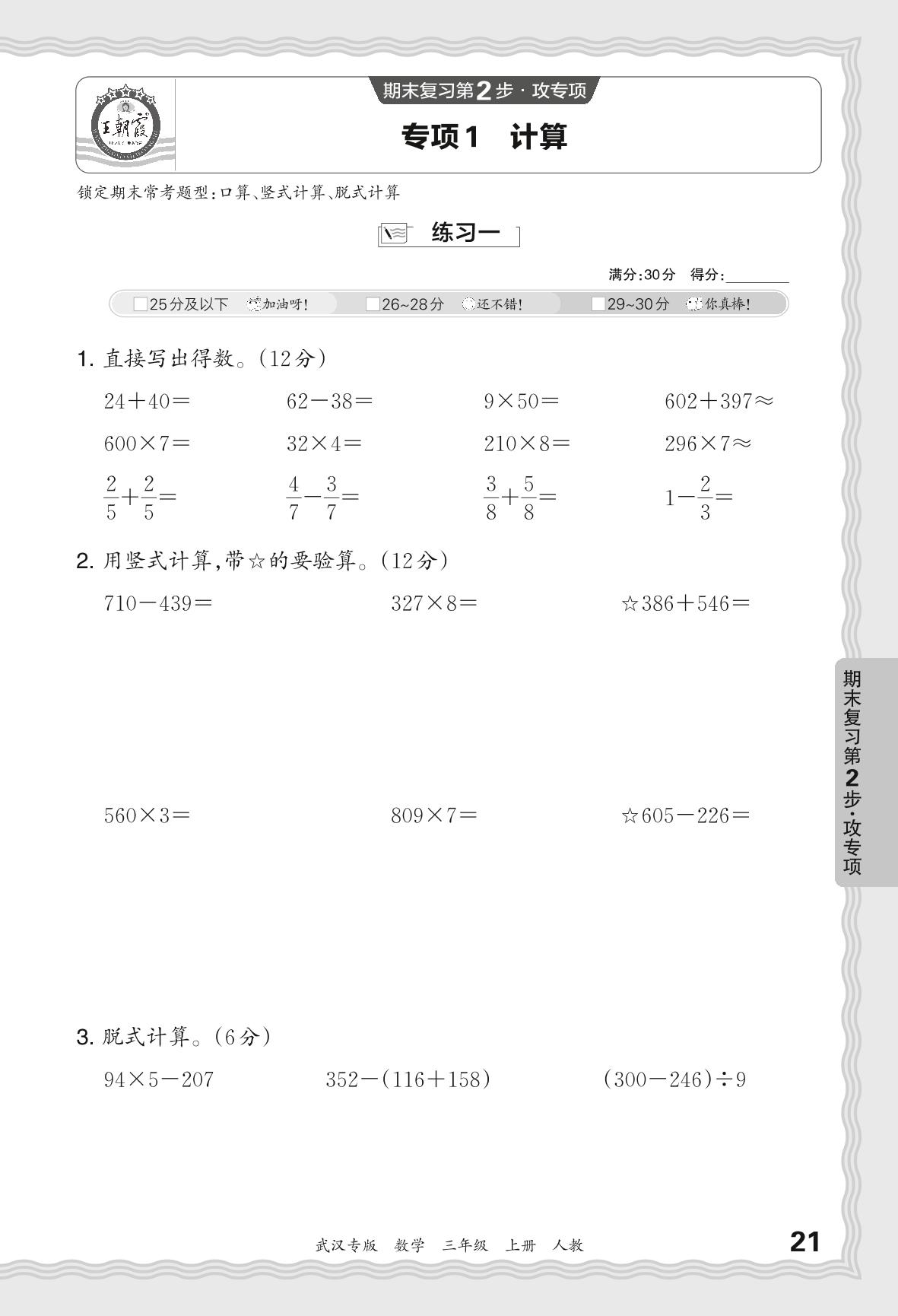 三年级数学人教版上册专项卷