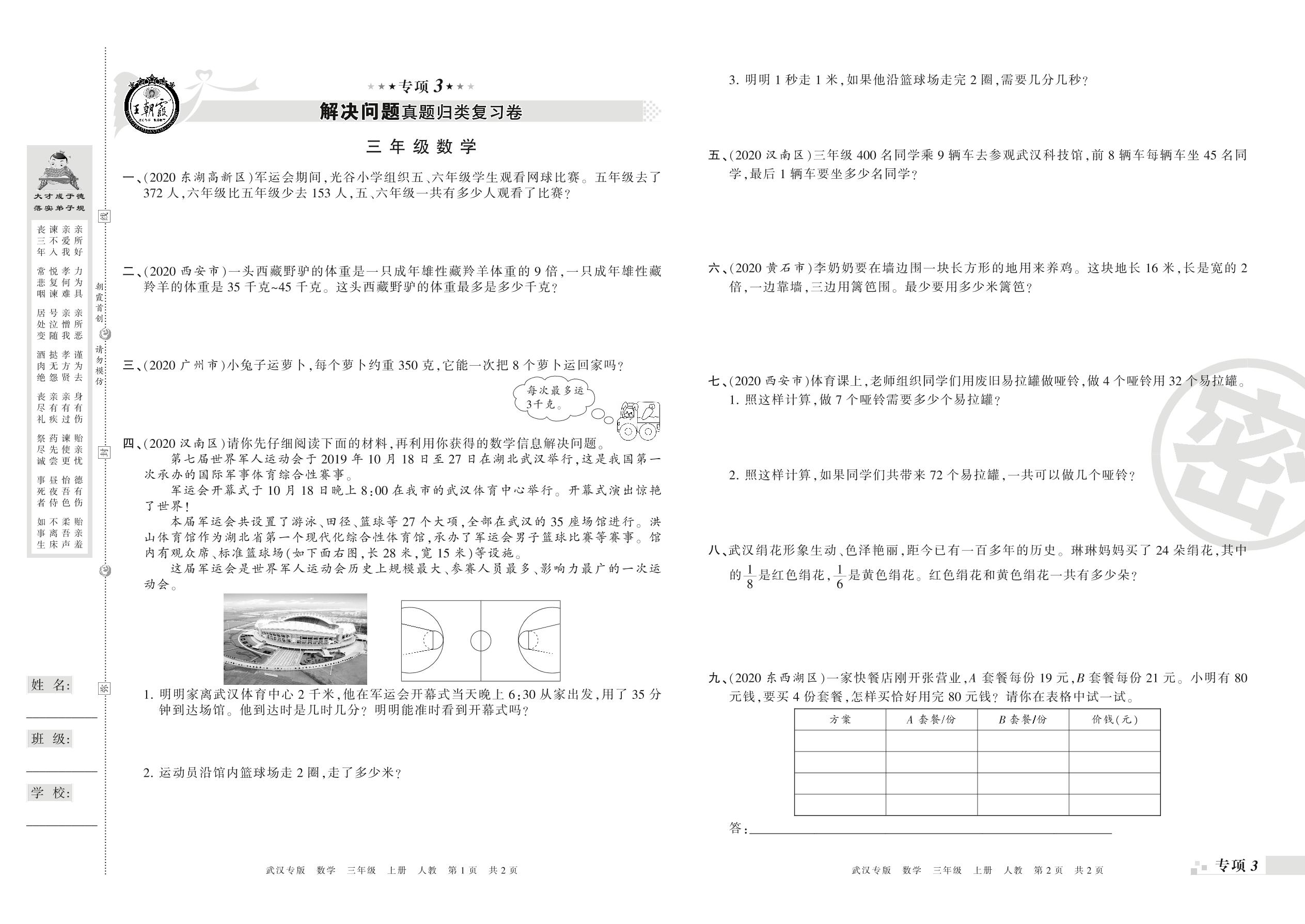 王朝霞期末专项卷——解决问题真题归类复习、新颖题速递:生活与数学三年级上册数学(人教版)_R21080490524【0】