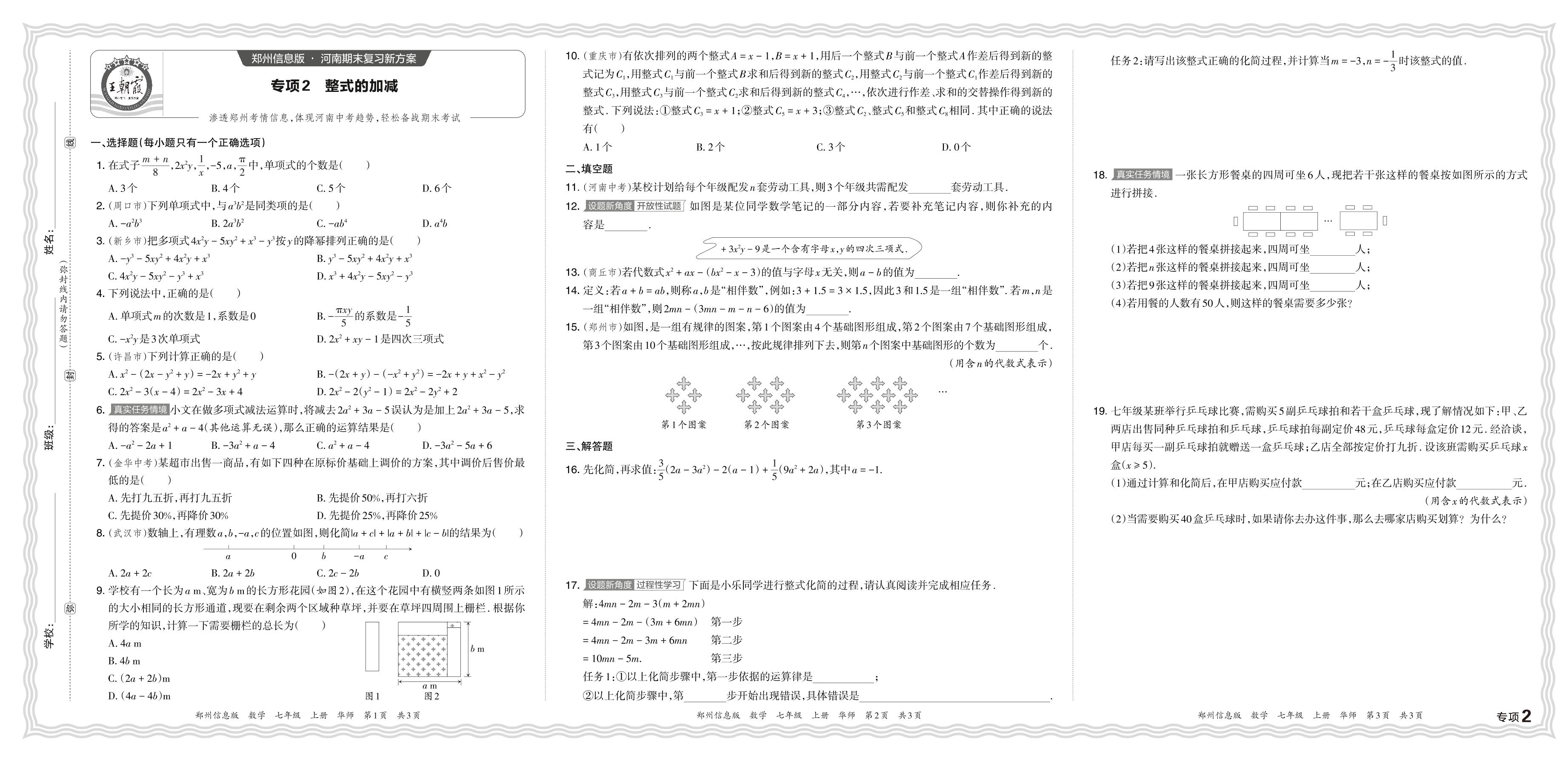 2023秋上册七年级数学华师版 期末专项卷·整式的加减【2】