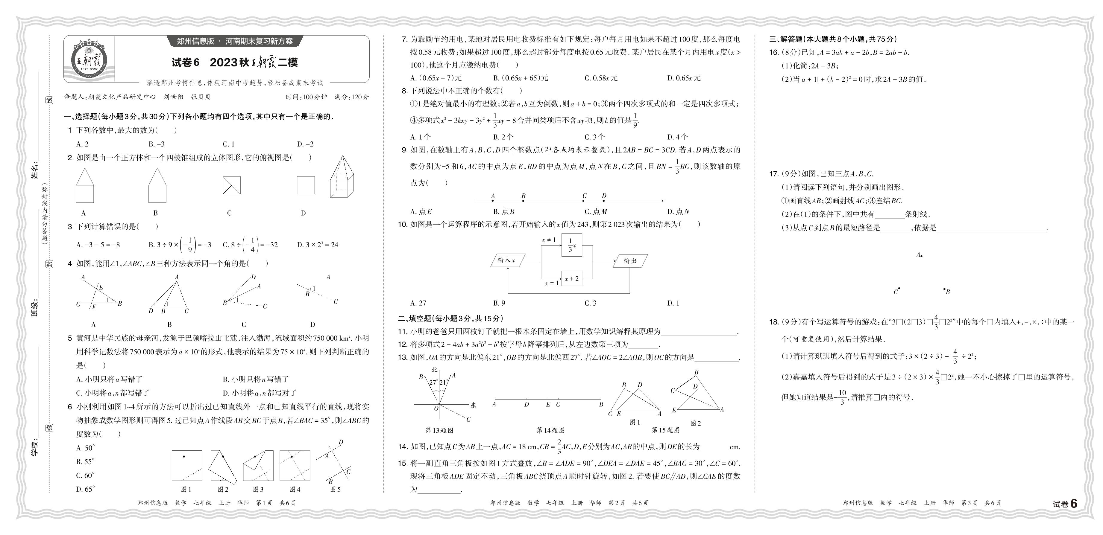 2023秋上册七年级数学华师版 王朝霞二模