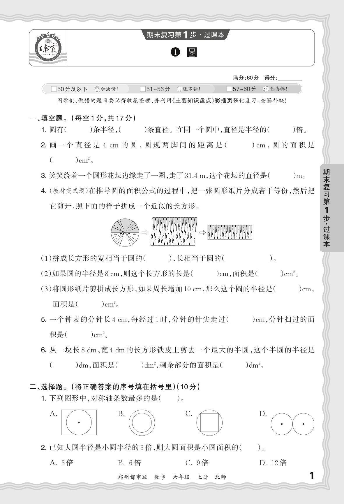 2023秋上册六年级数学北师版 期末过课本QMB版·圆【1】