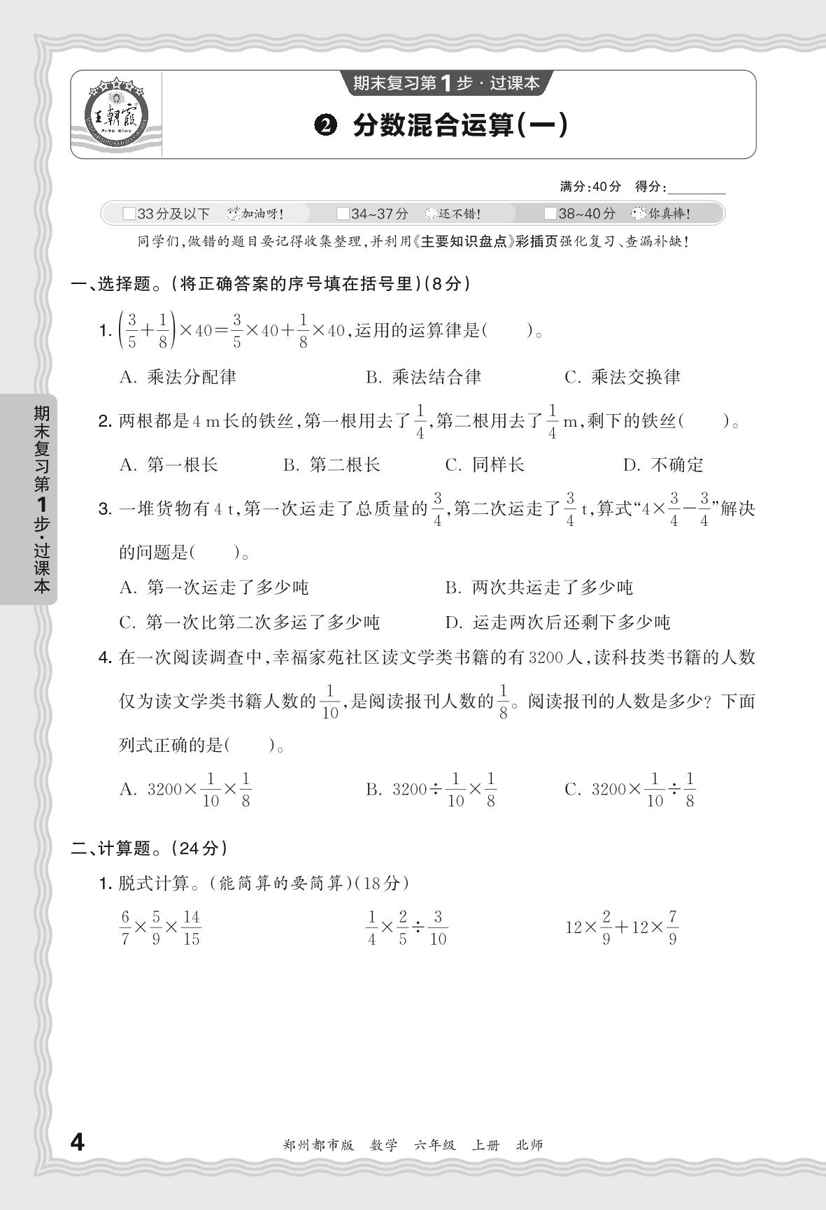 2023秋上册六年级数学北师版 期末过课本QMB版·分数混合运算(一)【2】