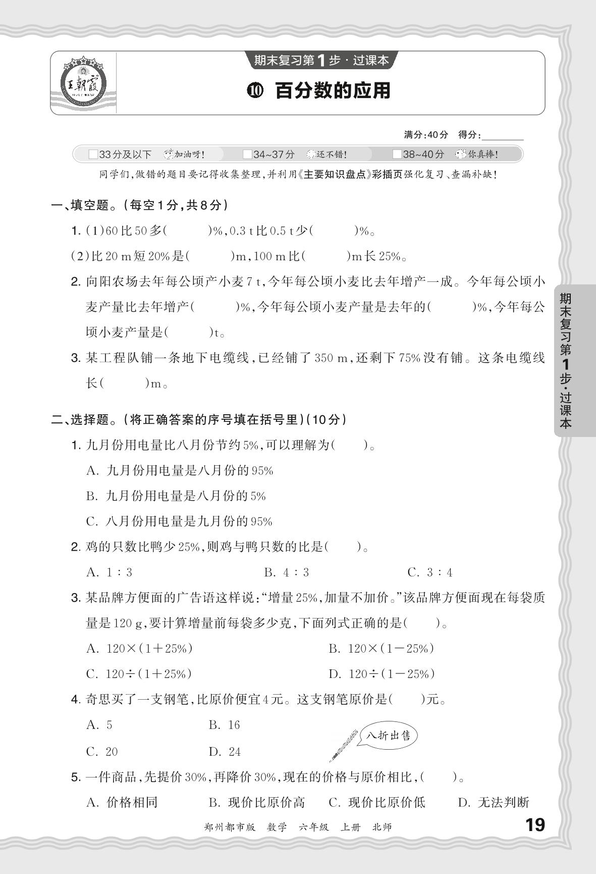 2023秋上册六年级数学北师版 期末过课本QMB版·百分数的应用【10】