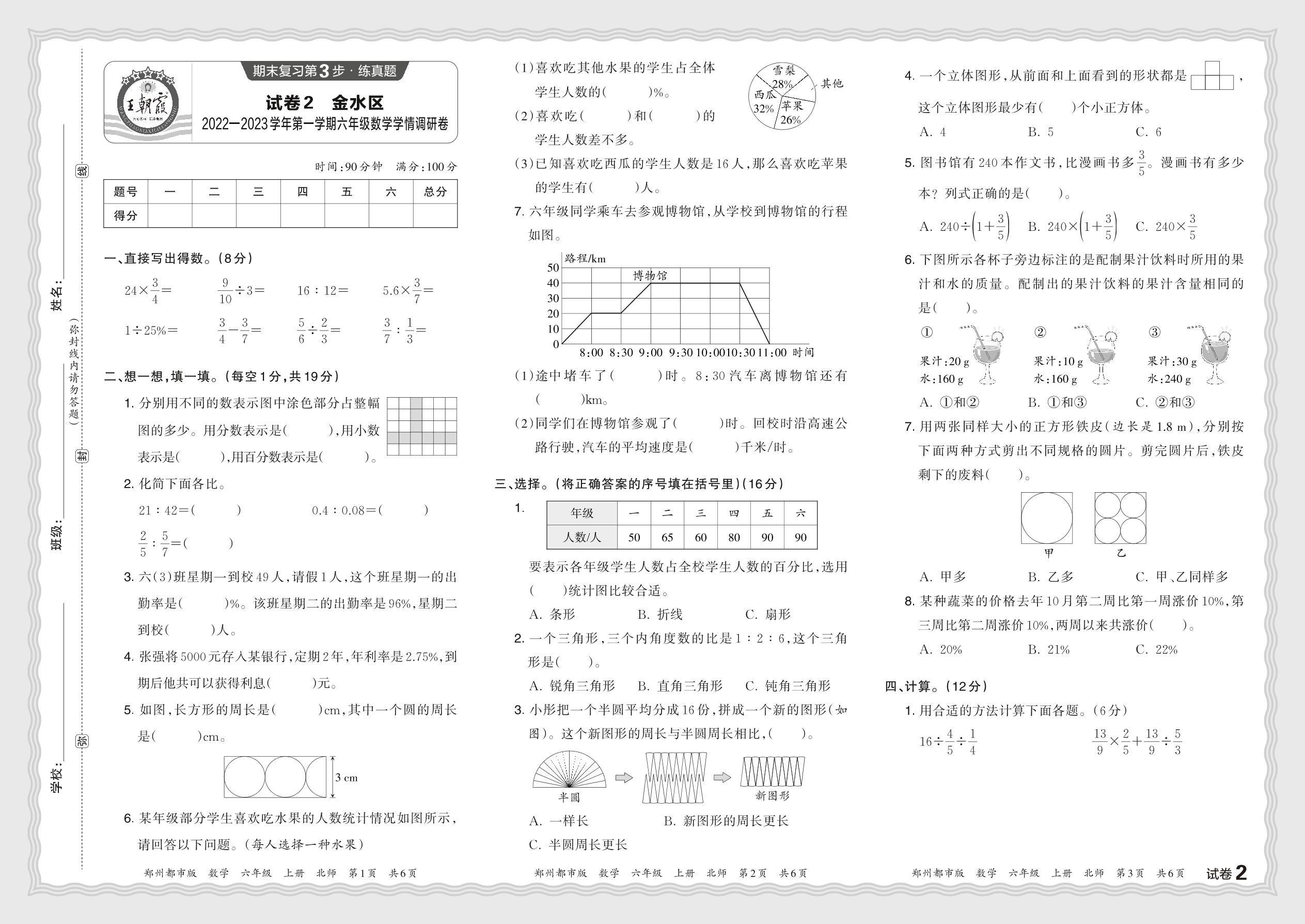 河南省郑州市金水区2022—2023学年第一学期六年级数学学情调研卷(北师版)【2】