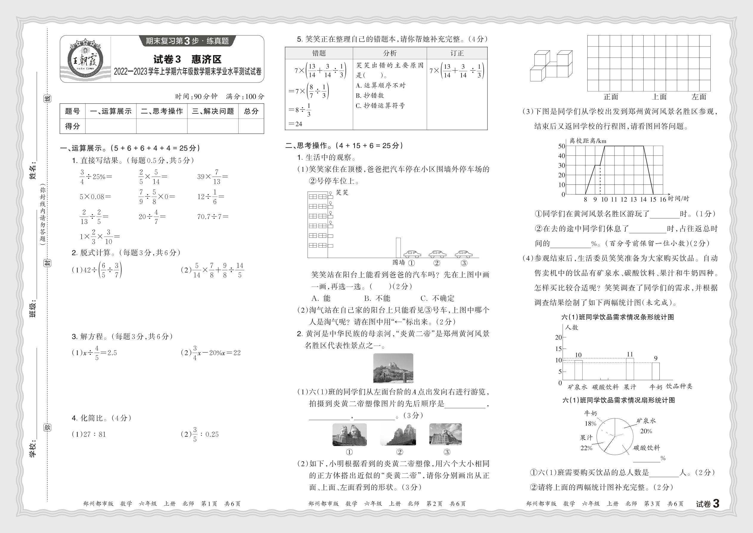 河南省郑州市惠济区2022—2023学年上学期六年级数学期末学业水平测试试卷(北师版)【3】
