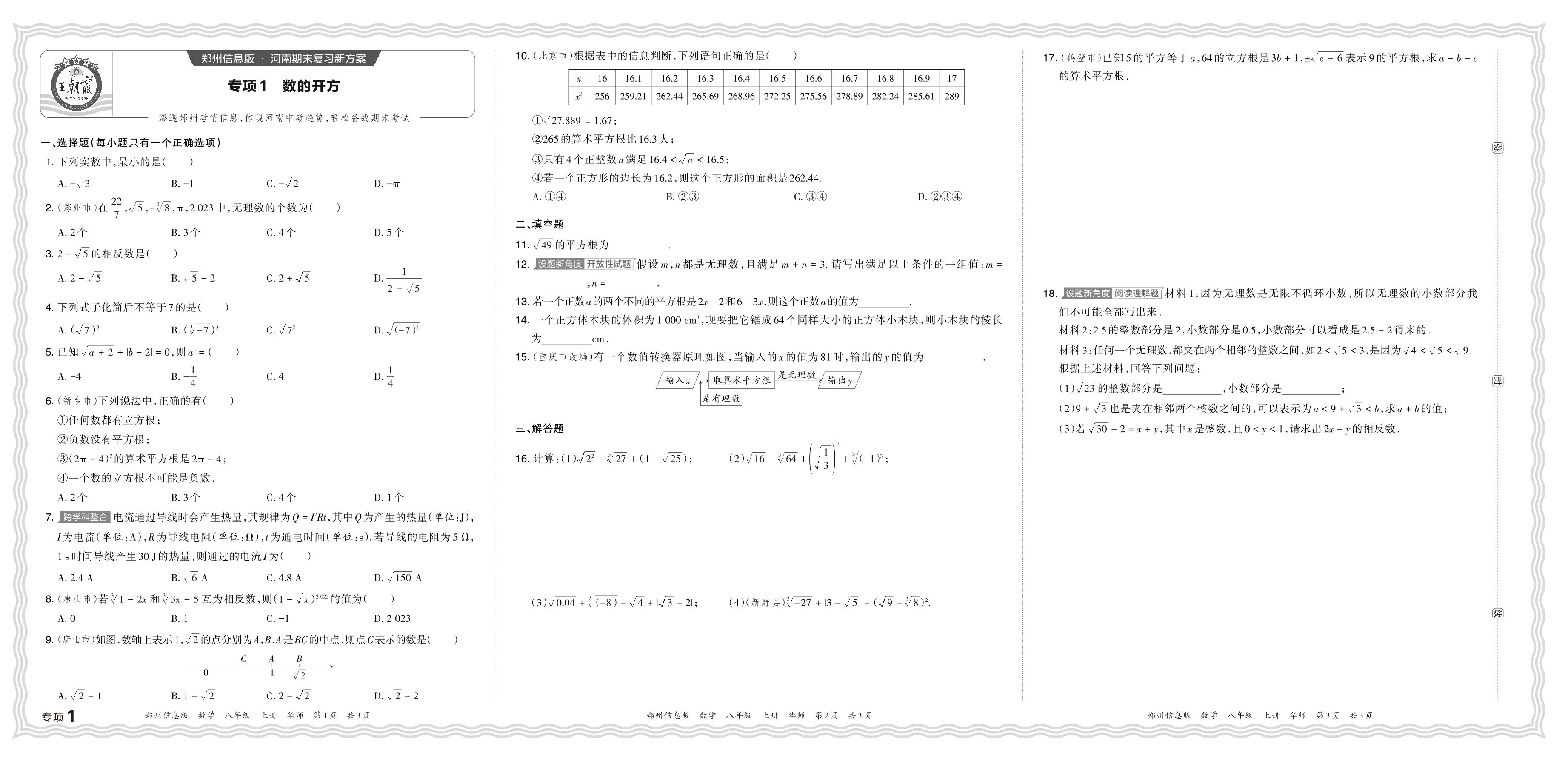 2023秋上册八年级数学华师版 期末专项卷·数的开方【1】