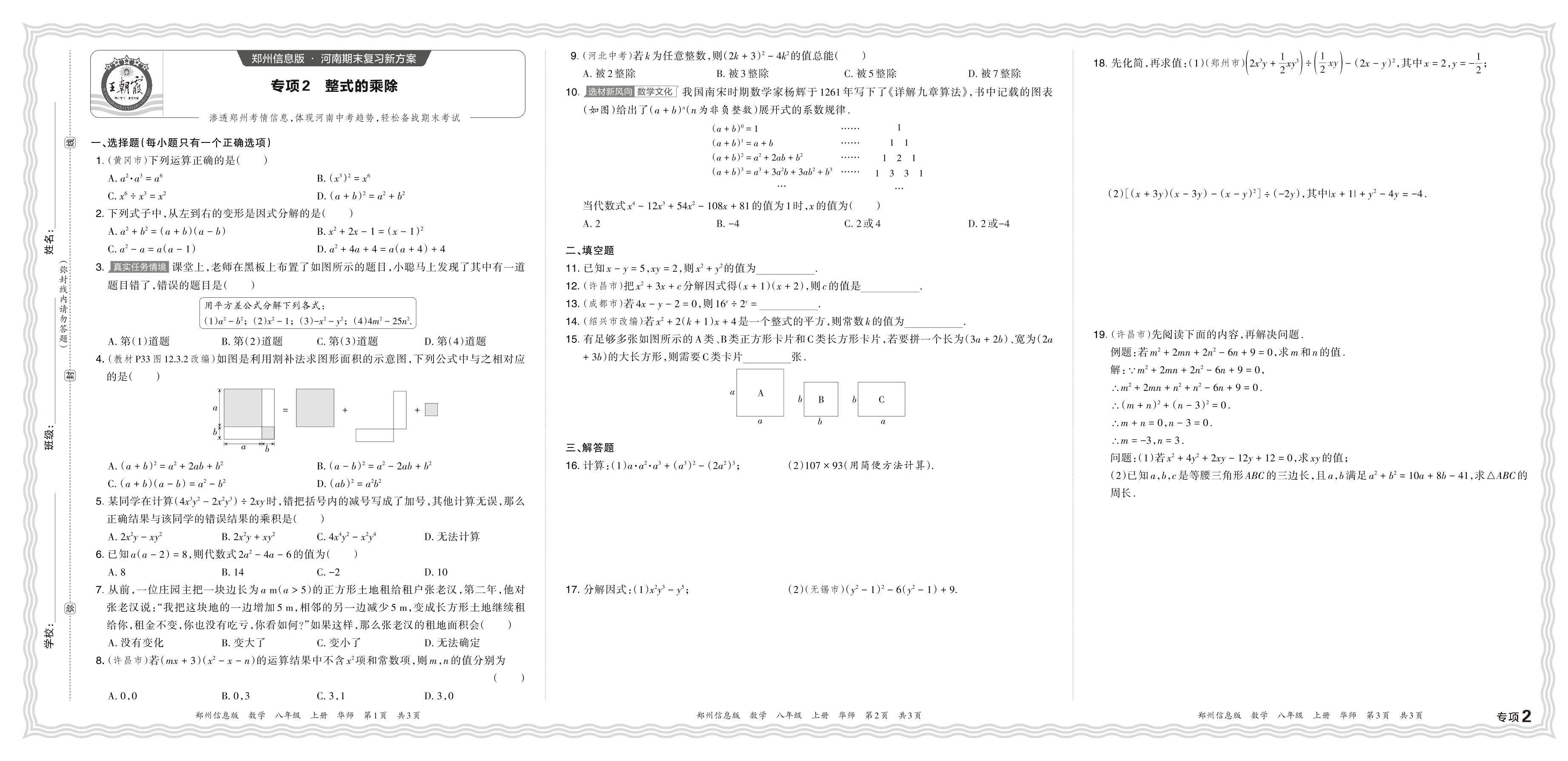 2023秋上册八年级数学华师版 期末专项卷·整式的乘除【2】