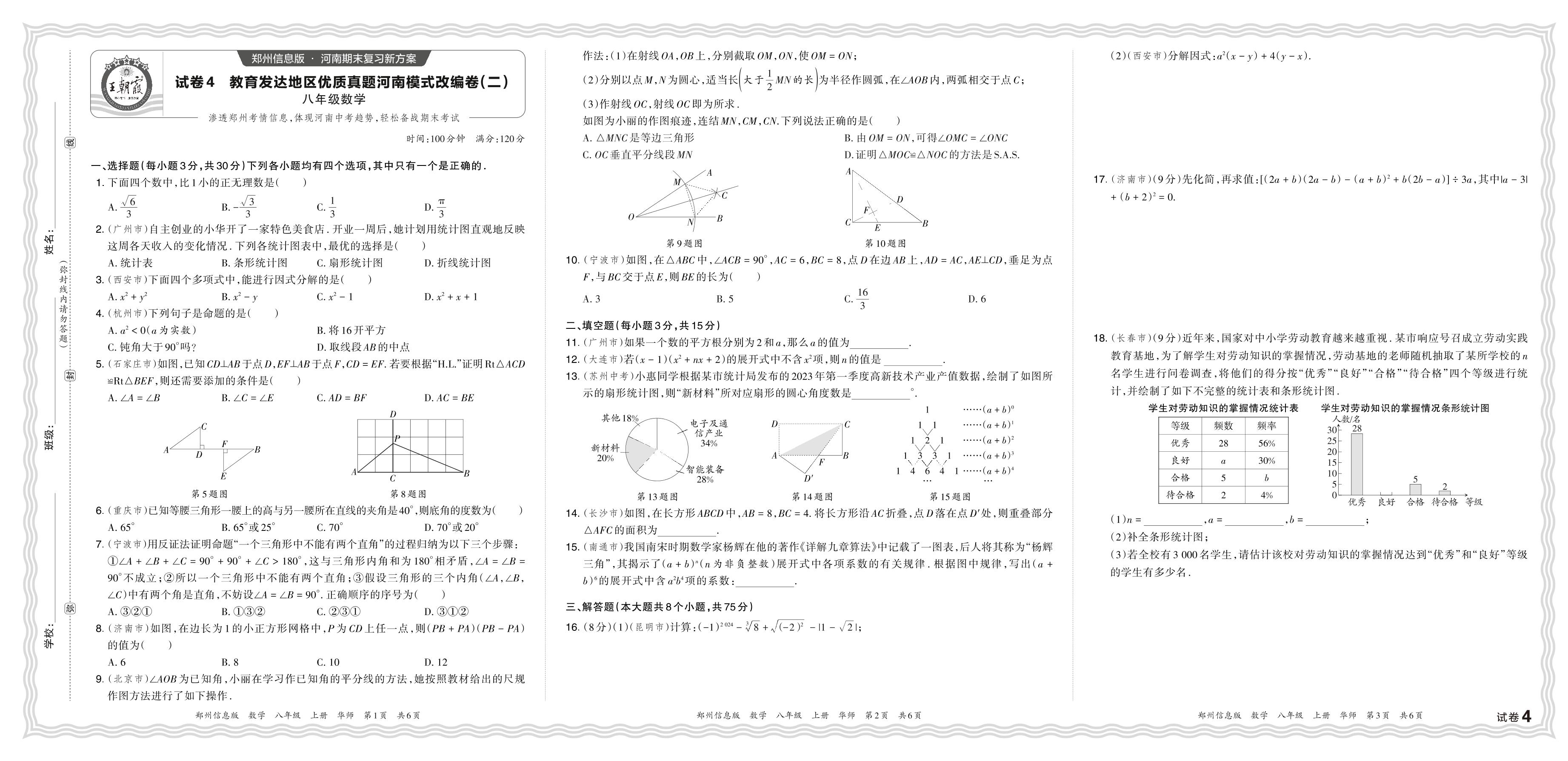 2023年秋教育发达地区优质真题河南模式改编卷(二)八年级上册期末数学(华师版)【4】