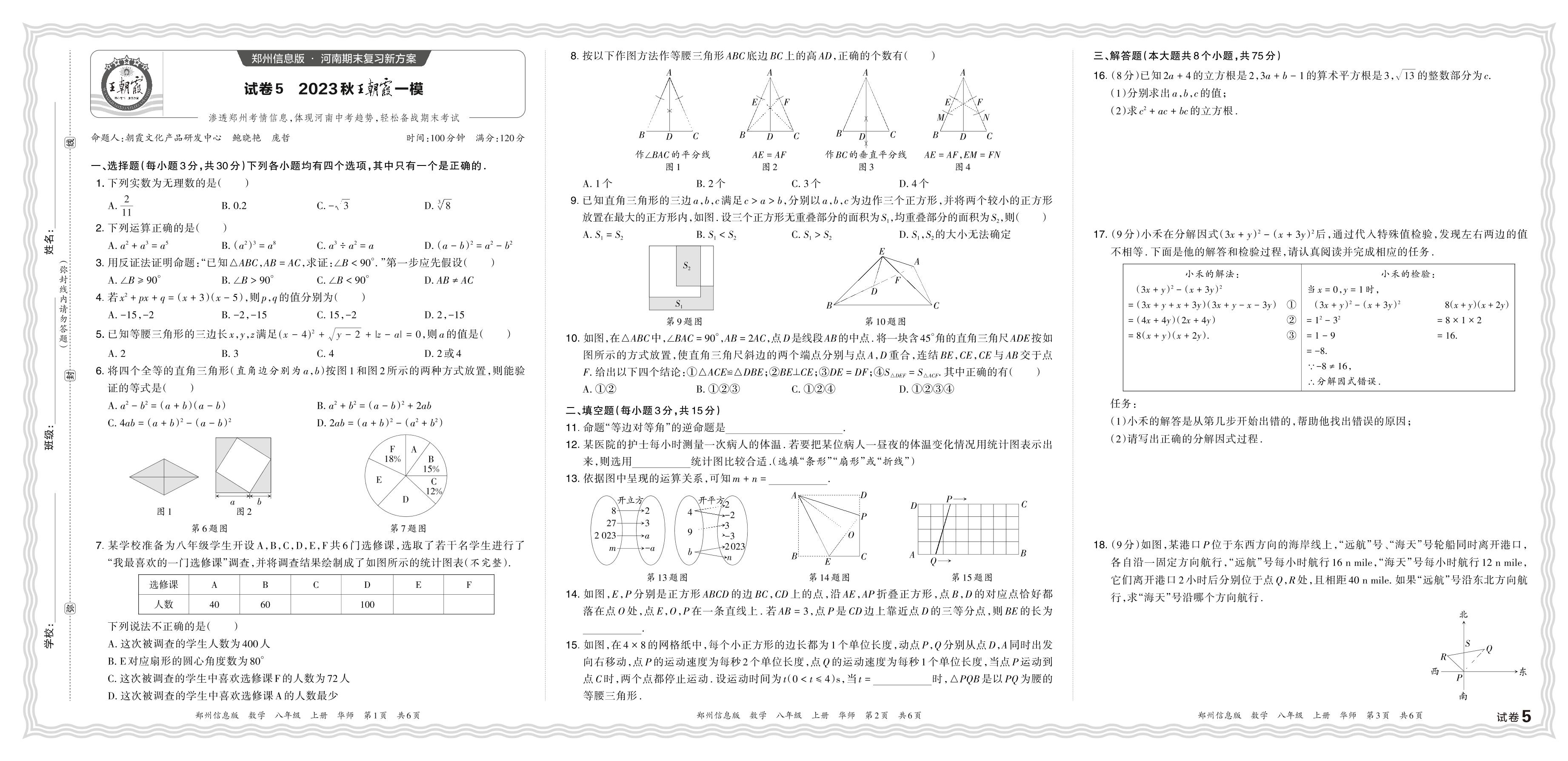 2023秋上册八年级数学华师版 王朝霞一模