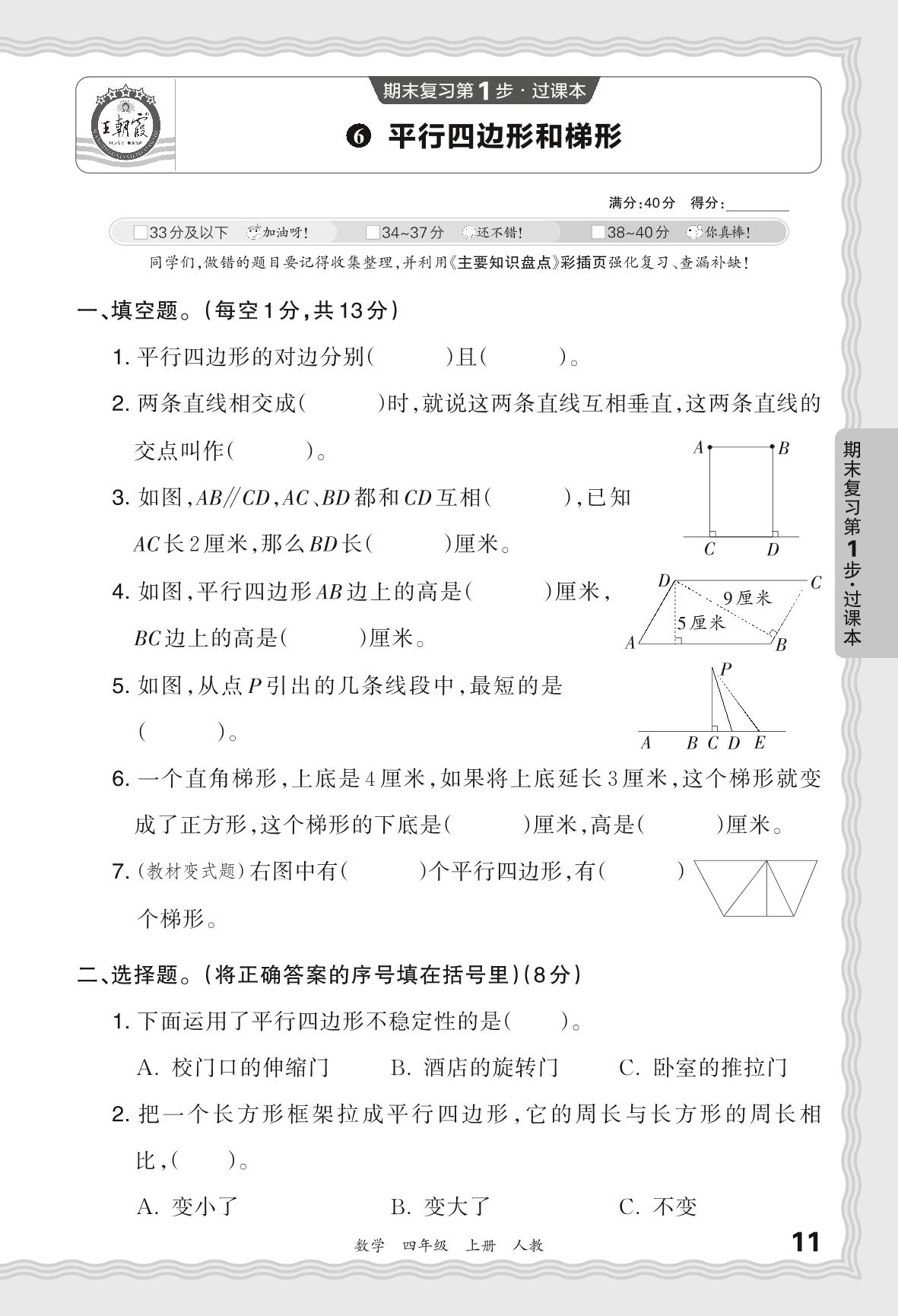 2023秋上册四年级数学人教版 期末过课本QMB版·平行四边形和梯形【6】