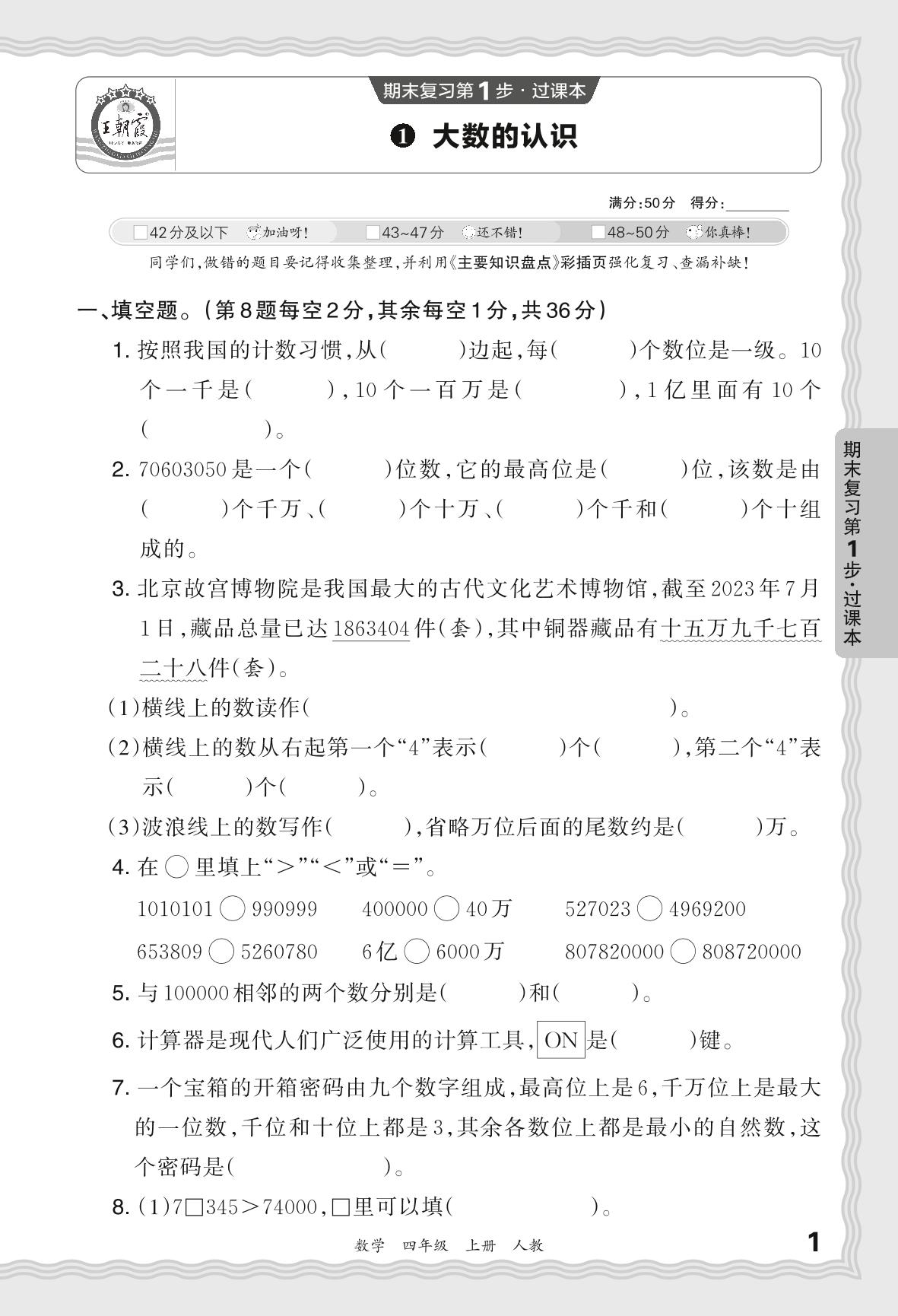 2023秋上册四年级数学人教版 期末过课本QMB版·大数的认识【1】