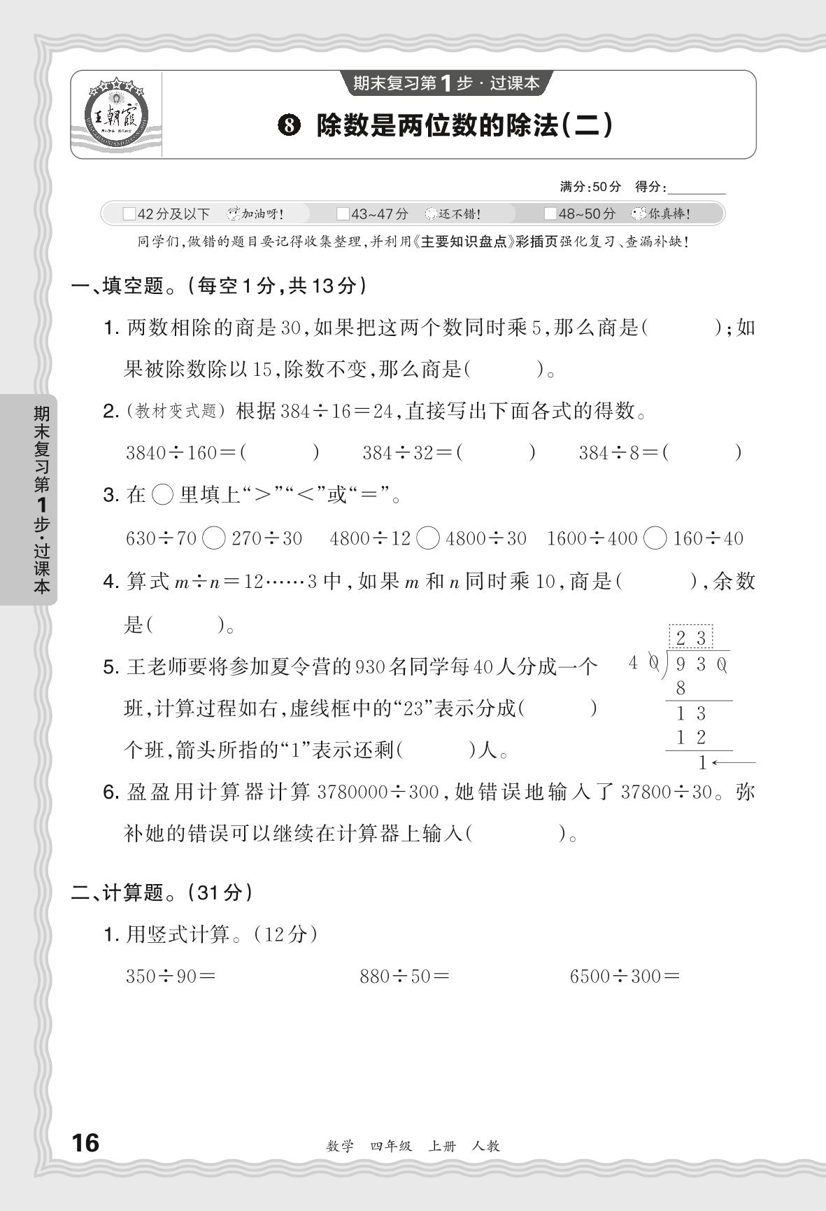 2023秋上册四年级数学人教版 期末过课本QMB版·除数是两位数的除法(二)【8】