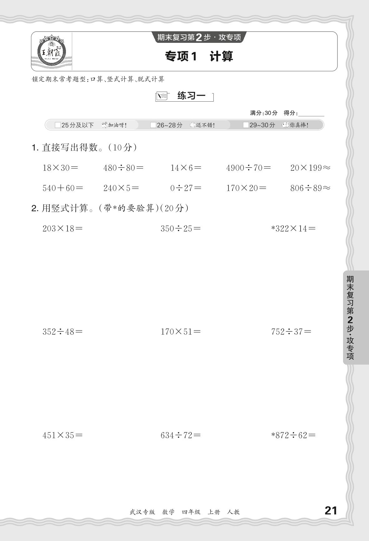 四年级数学人教版上册专项卷
