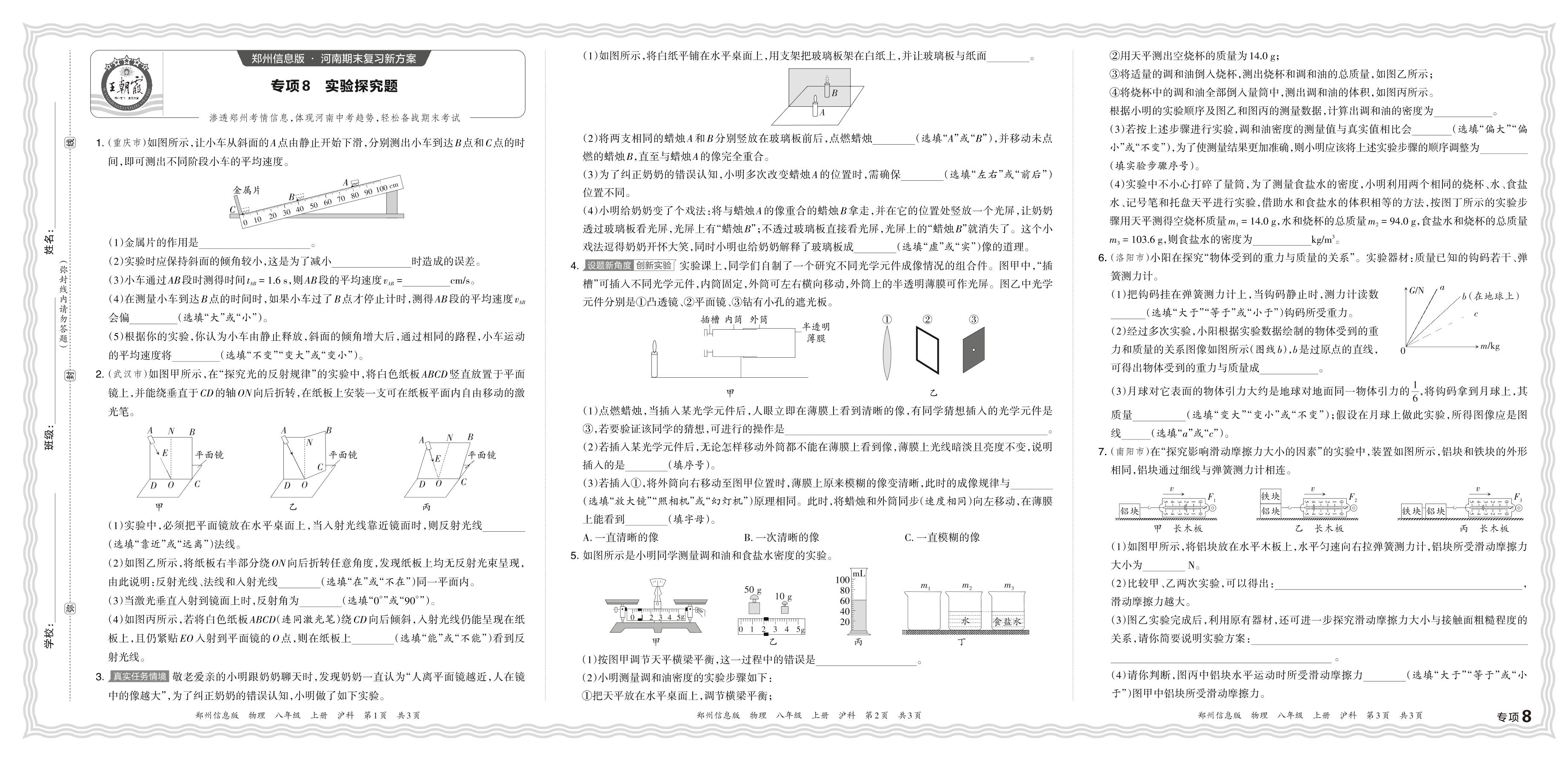 2023秋上册八年级物理沪科版 期末专项卷·实验探究题【8】