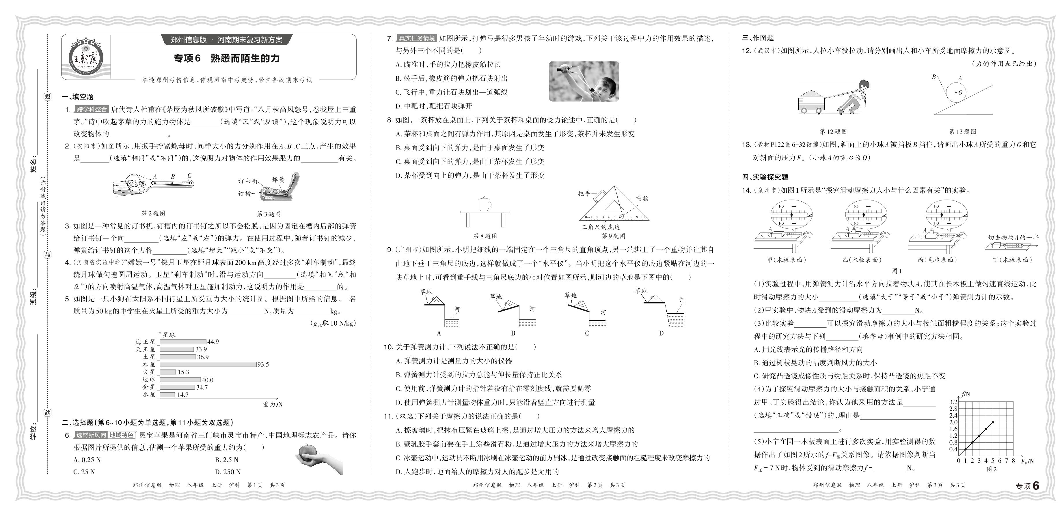 2023秋上册八年级物理沪科版 期末专项卷·熟悉而陌生的力【6】