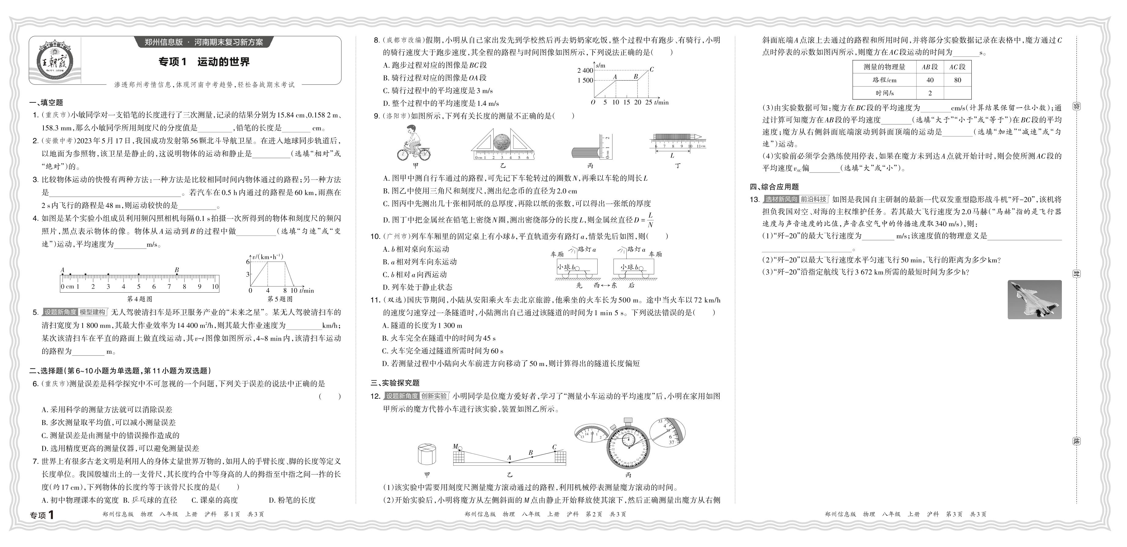 2023秋上册八年级物理沪科版 期末专项卷·运动的世界【1】