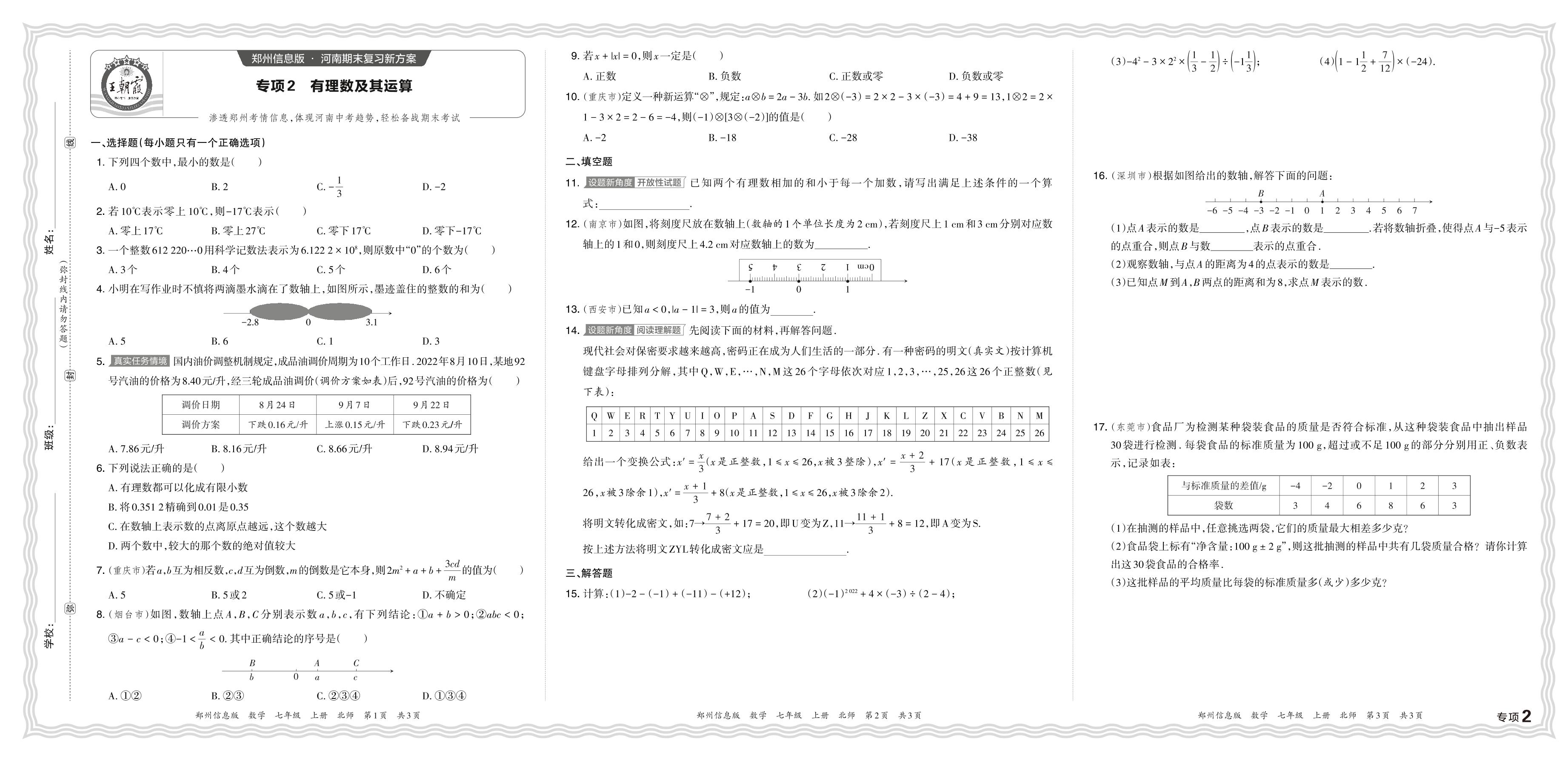 2023秋上册七年级数学北师版 期末专项卷·有理数及其运算【2】