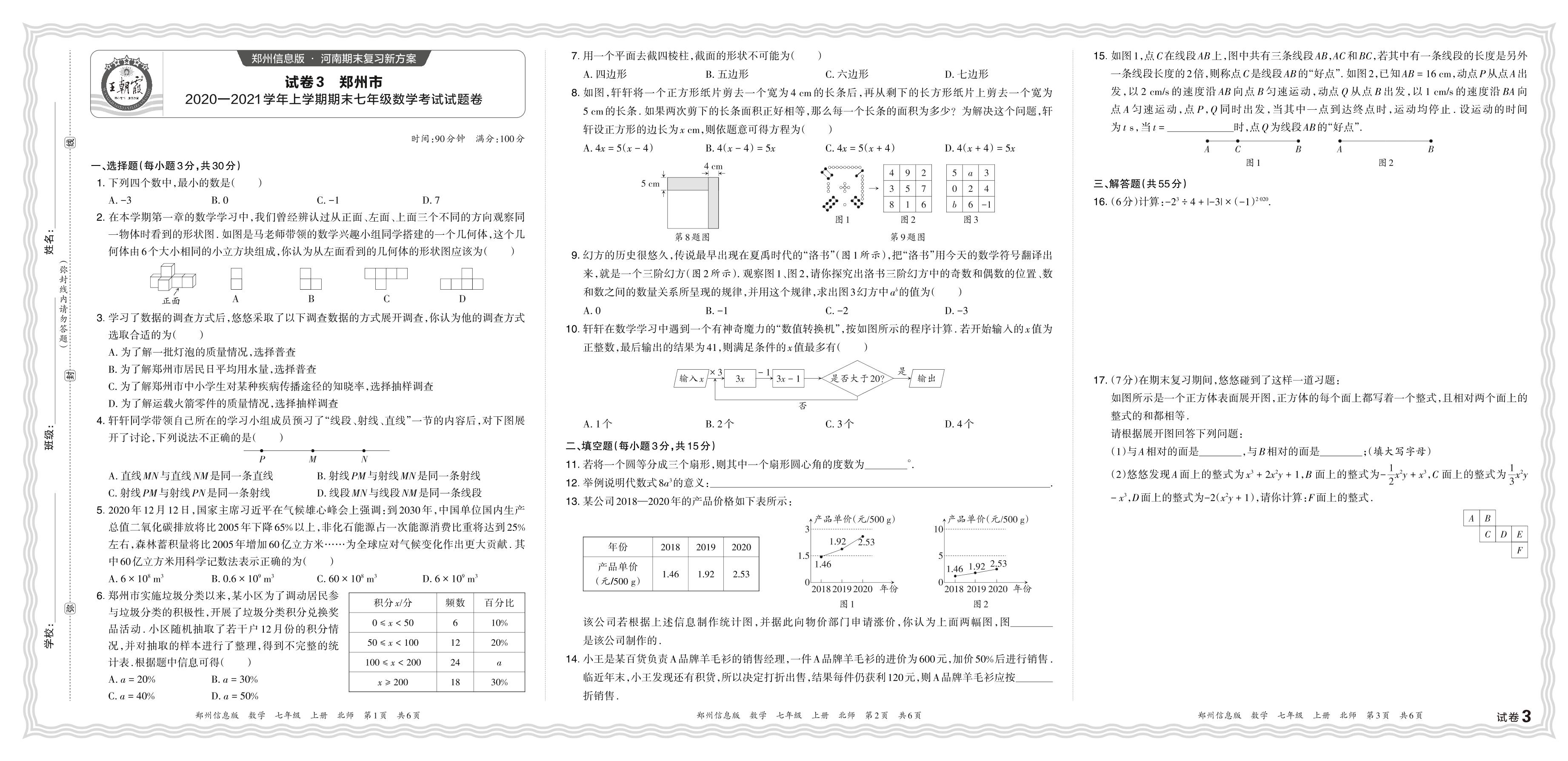 河南省郑州市2020—2021学年上学期期末七年级数学考试试题卷(北师版)【3】